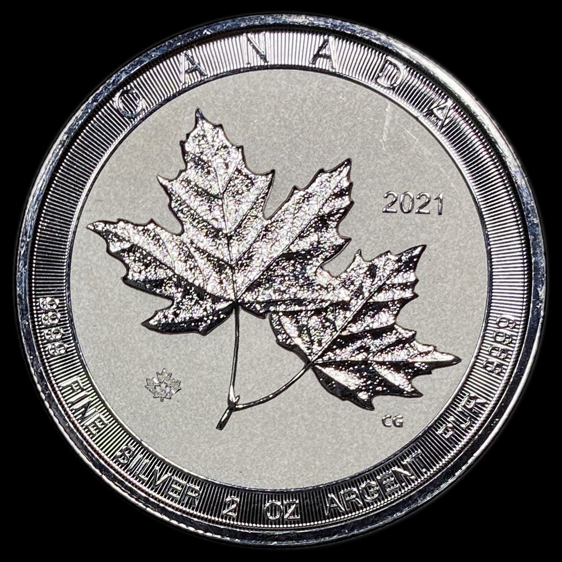 2021 Silver 2 oz Canadian Maple Leaf $10 SUPERB GEM BU