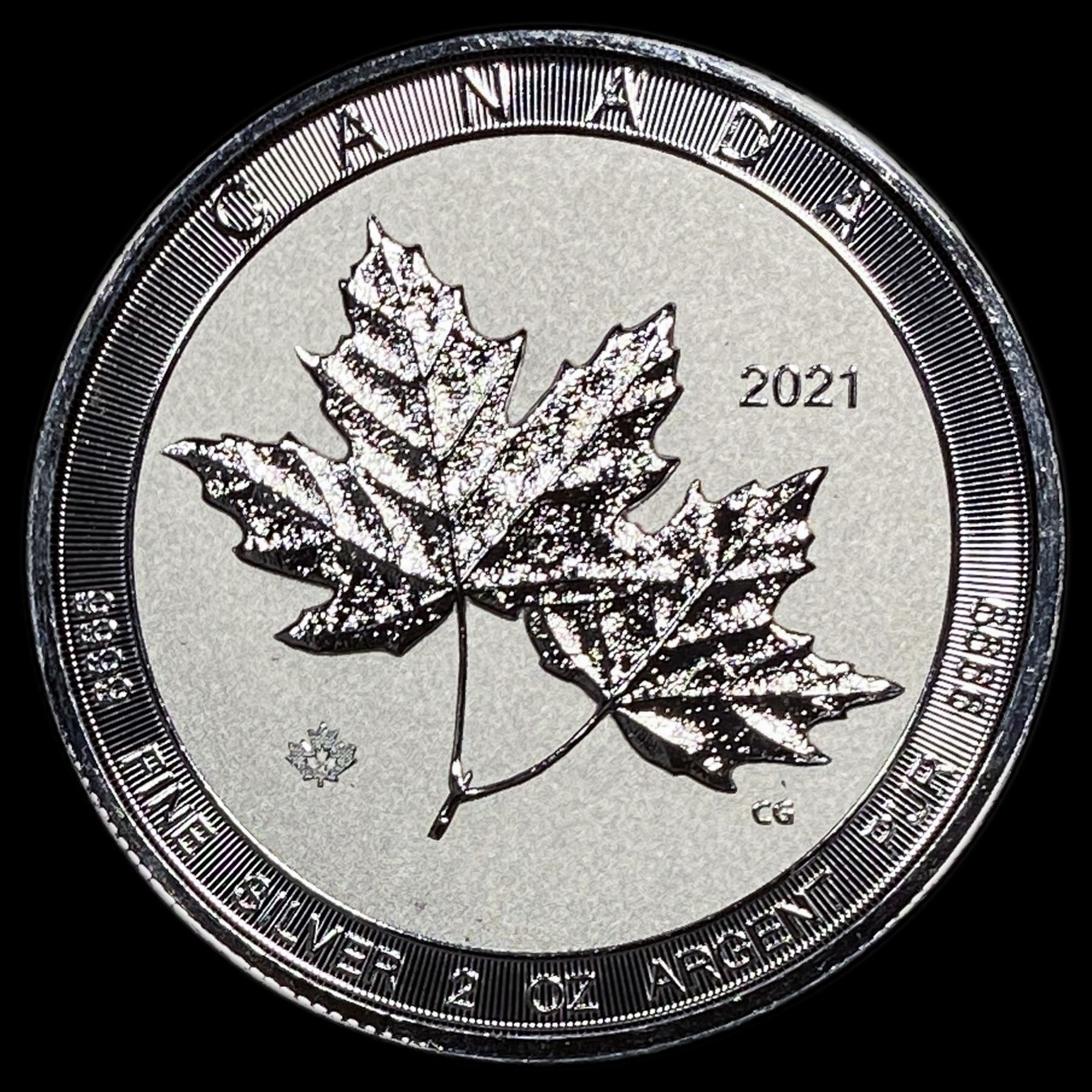 2021 Silver 2 oz Canadian Maple Leaf $10 SUPERB GEM BU