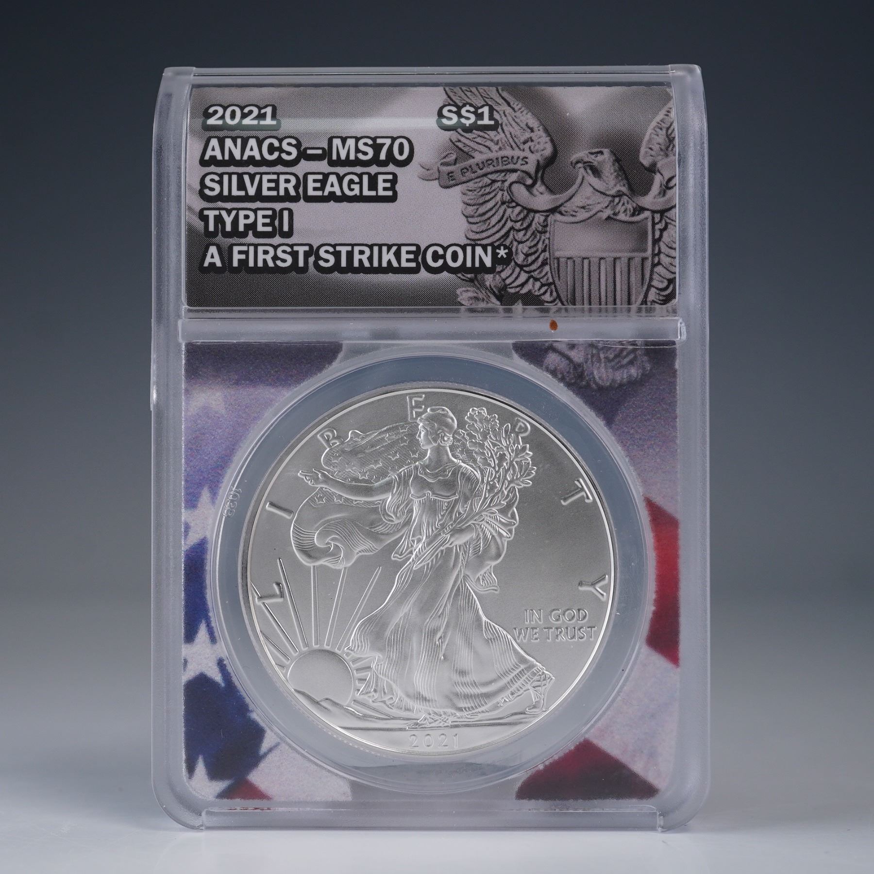 2021 Silver Eagle Dollar Coin, ANACS MS70 Type I First Strike