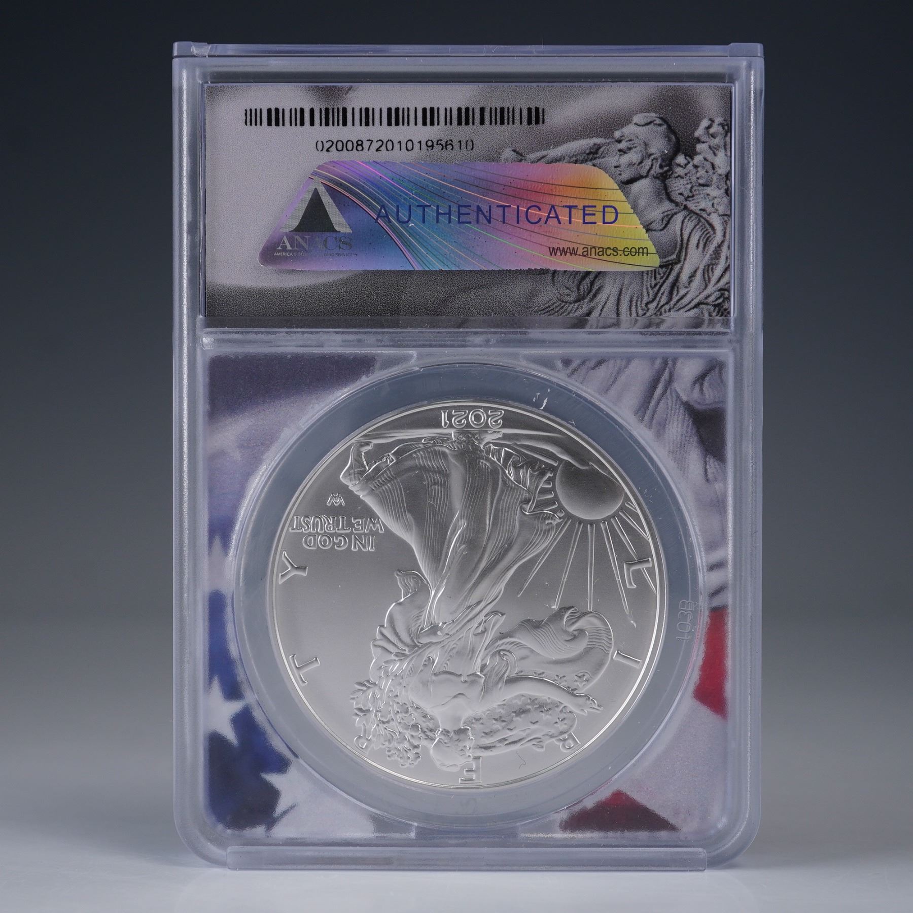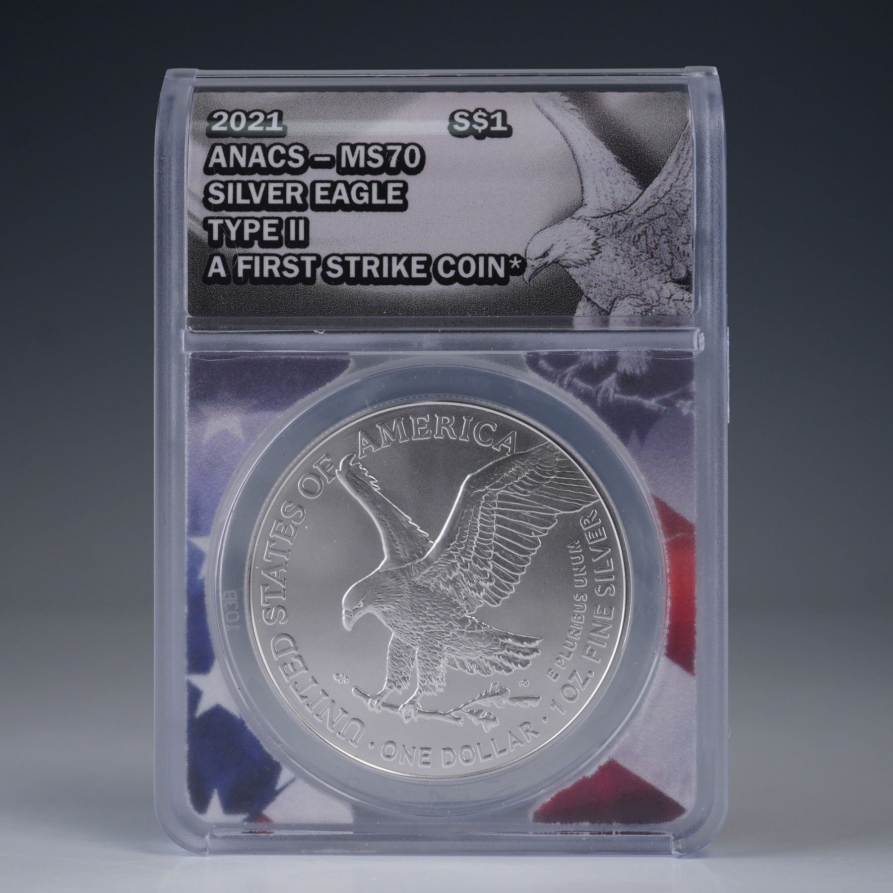 2021 Silver Eagle Dollar Coin, ANACS MS70 Type II First Strike