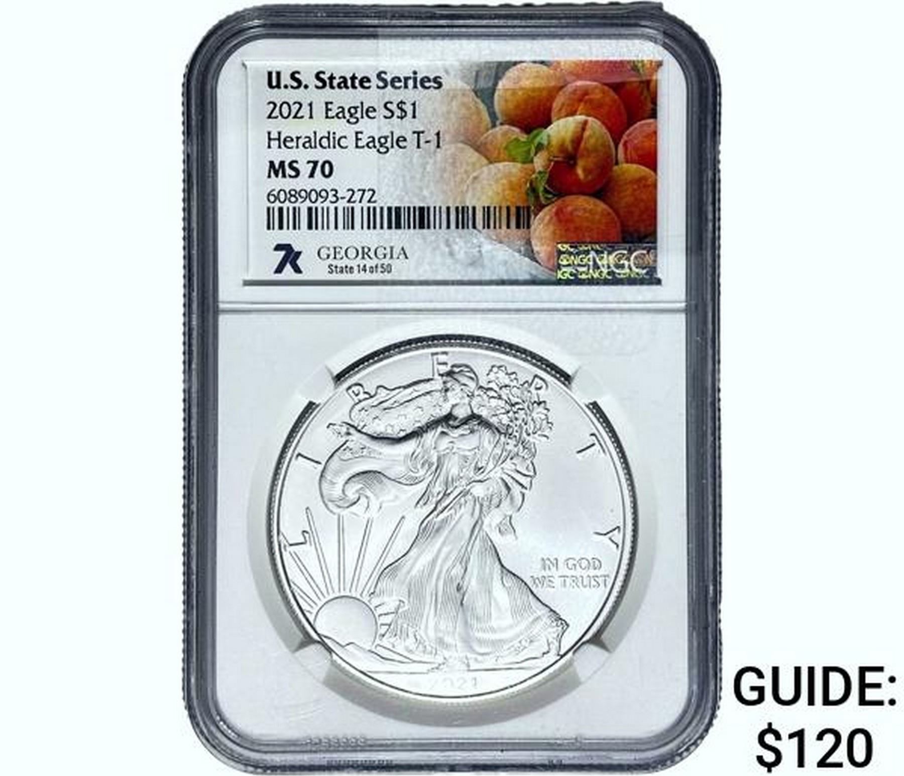2021 Silver Eagle NGC MS70 GA, Heraldic Eagle T-1