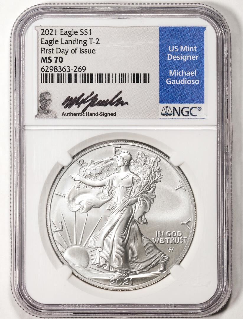 2021 T-2 $1 American Silver Eagle Coin NGC MS70 First Day of Issue Gaudioso Signature