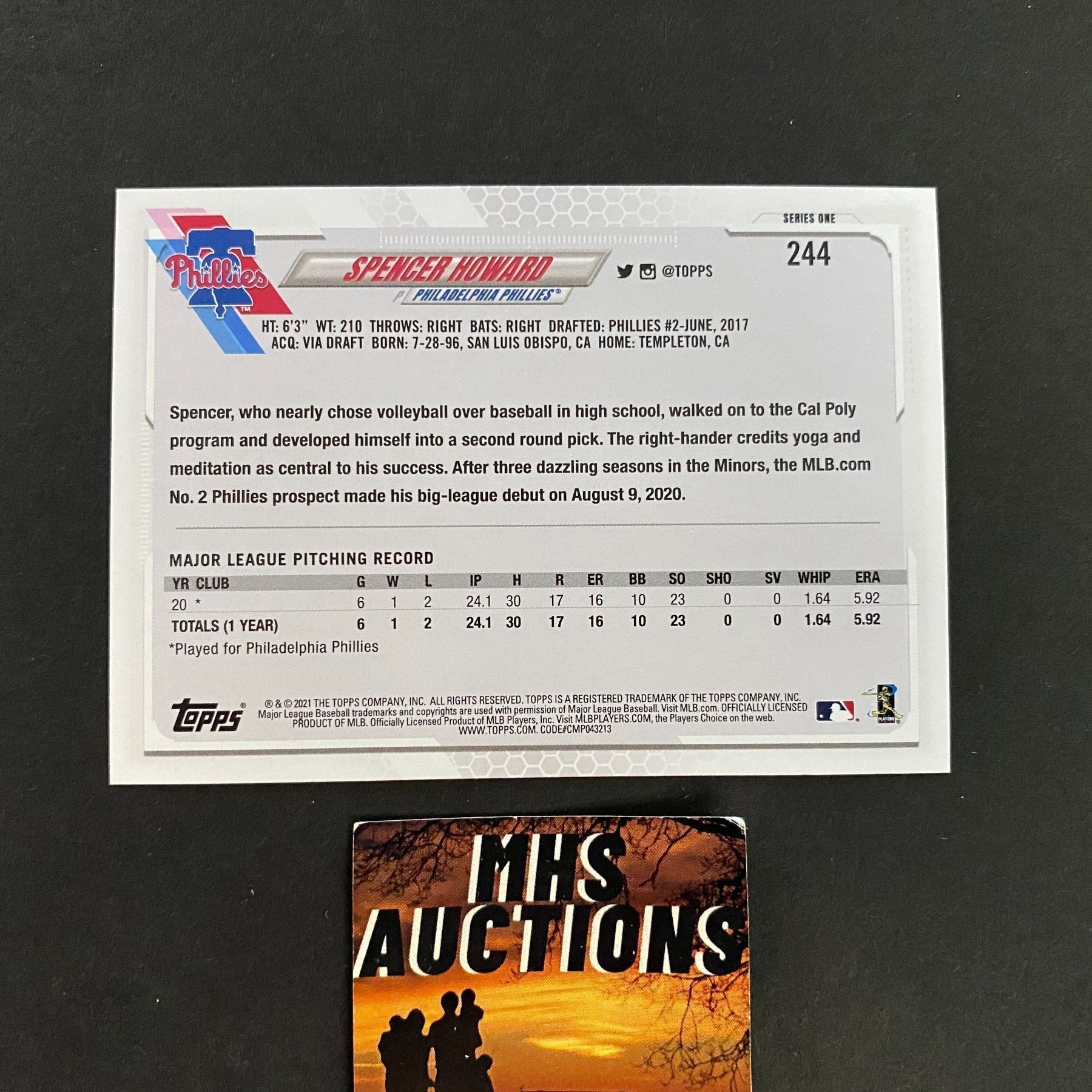 2021 TOPPS SPENCER HOWARD ROOKIE BASEBALL CARD
