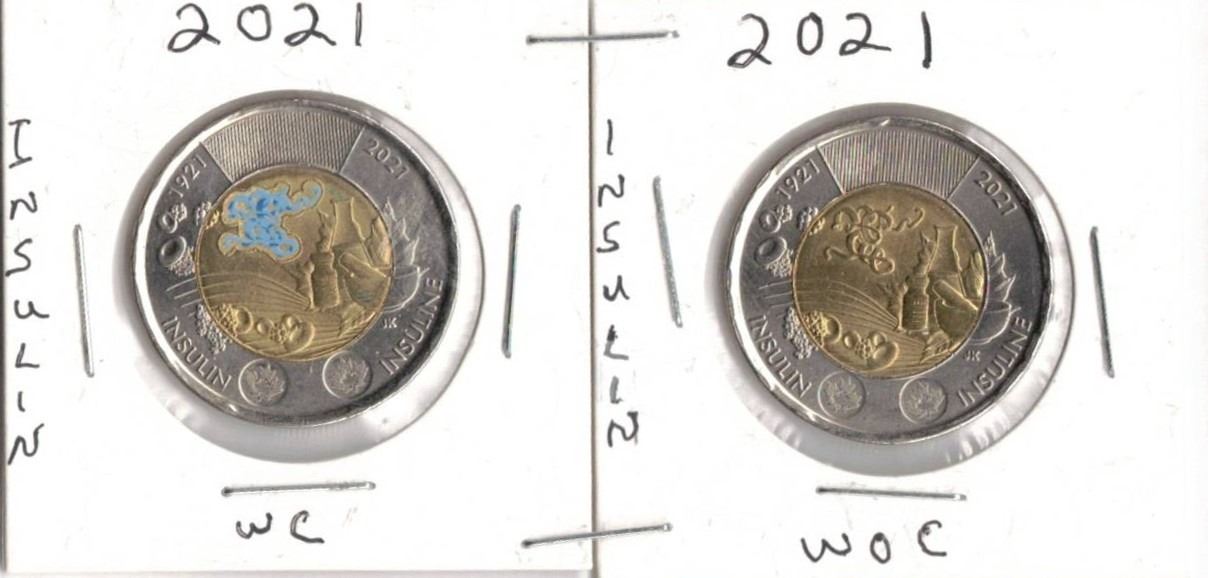 2021 Toonies , Discovery of Insulin, With Colour and Without Colour