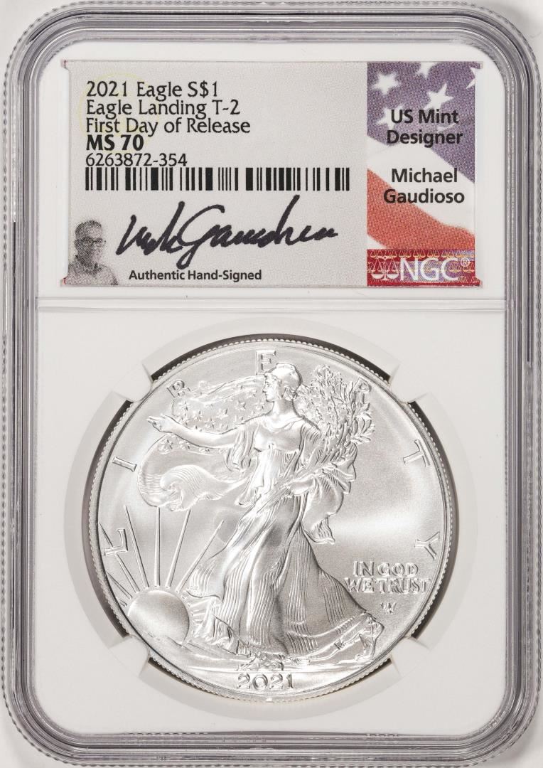 2021 Ty. 2 $1 American Silver Eagle Coin NGC MS70 First Day Release Gaudioso Signed