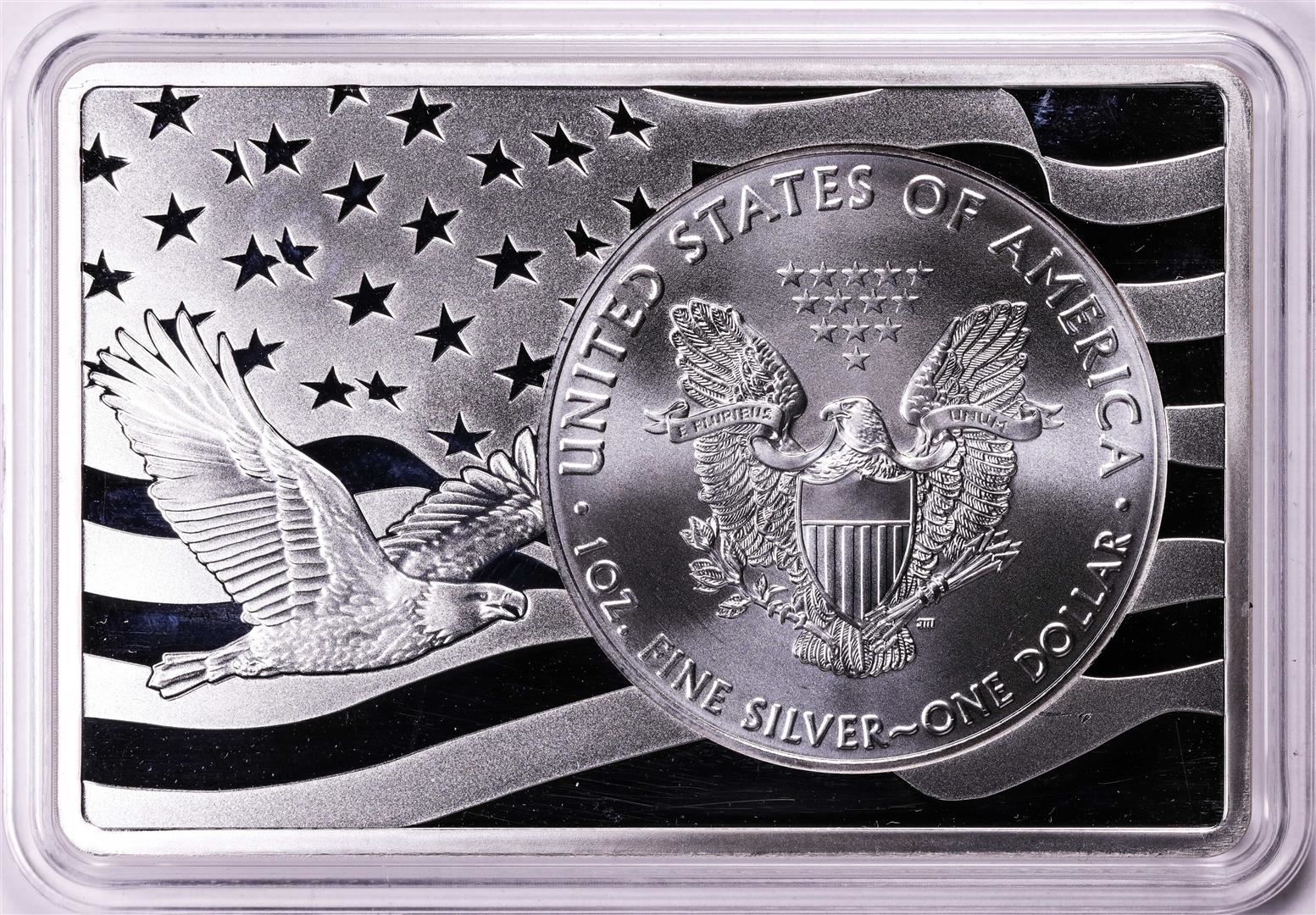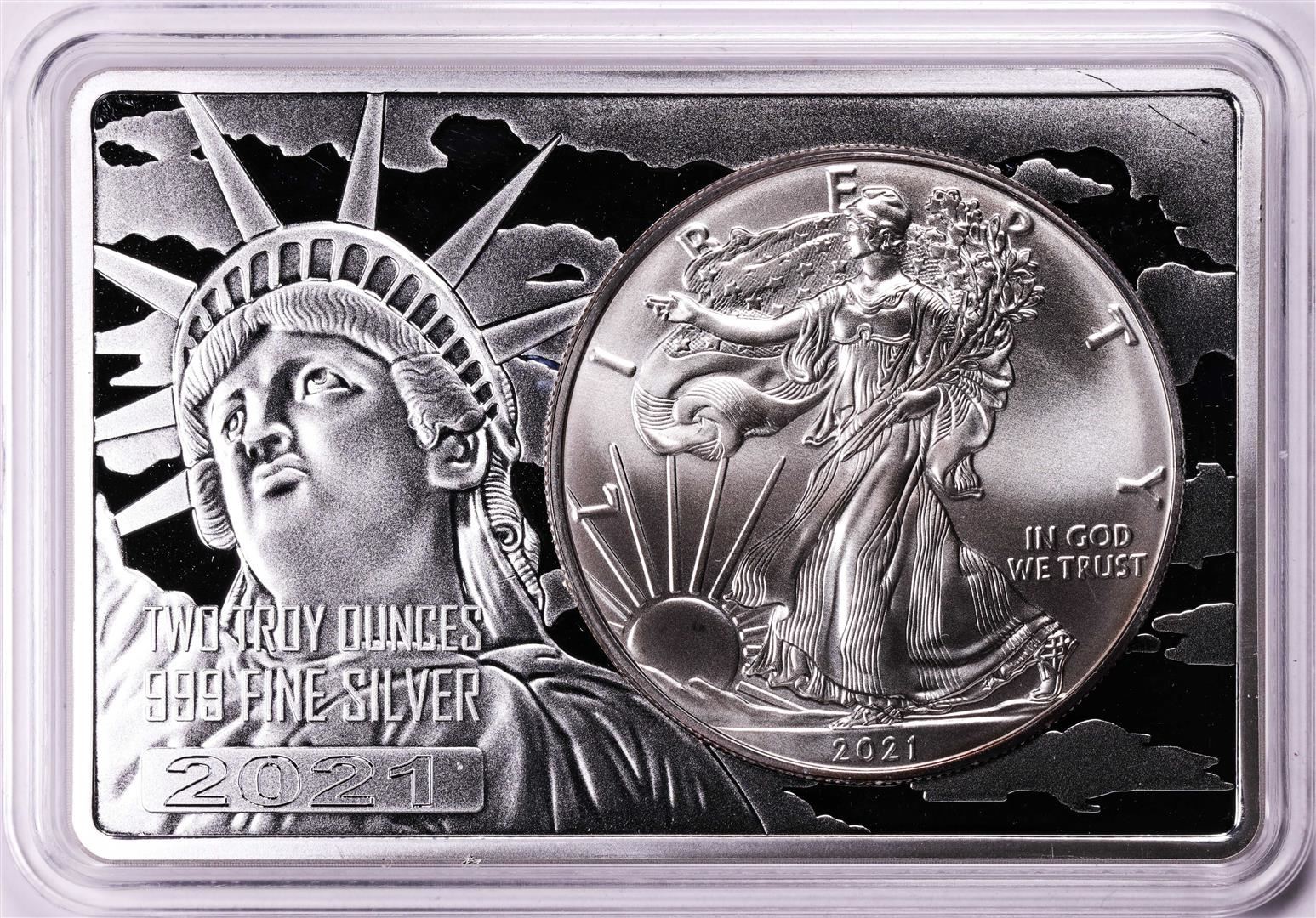 2021 Type 1 $1 American Silver Eagle Coin & 2oz Silver Bar Set