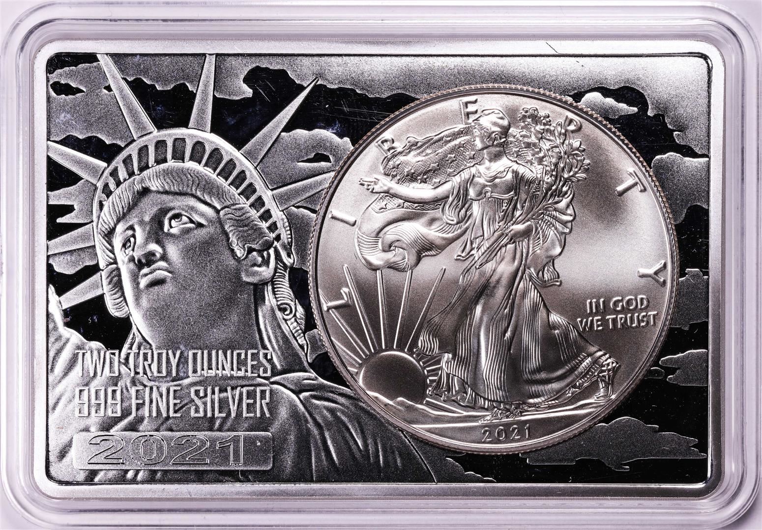 2021 Type 1 $1 American Silver Eagle Coin & 2oz Silver Bar Set
