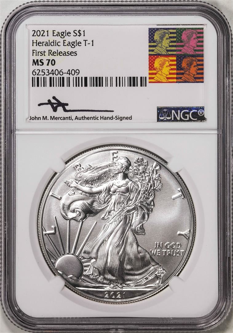 2021 Type 1 $1 American Silver Eagle Coin NGC MS70 First Releases Mercanti Signed
