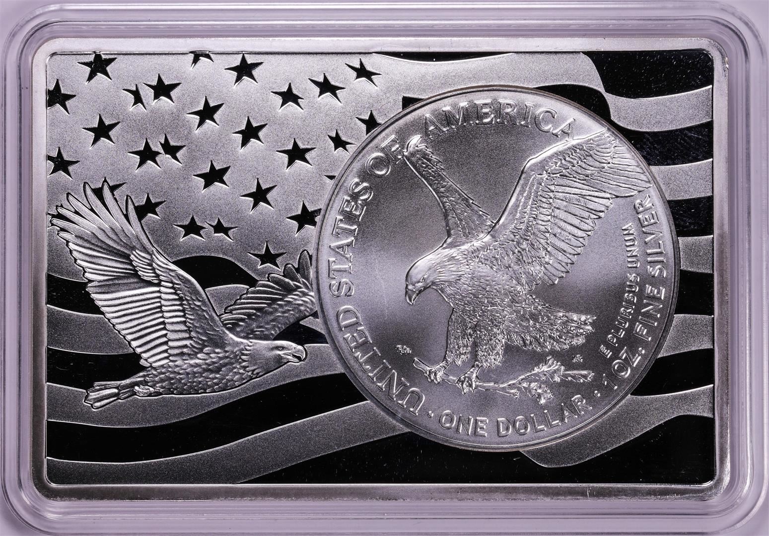 2021 Type 2 $1 American Silver Eagle Coin & 2oz Silver Bar Set