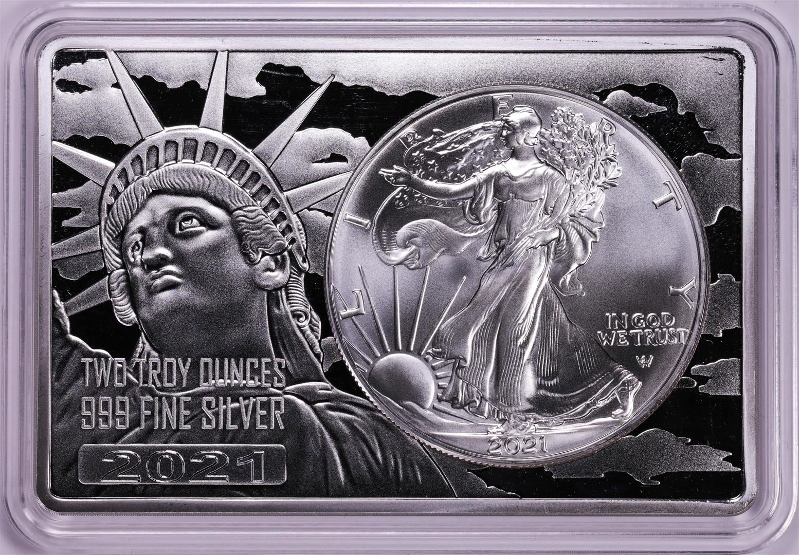 2021 Type 2 $1 American Silver Eagle Coin & 2oz Silver Bar Set