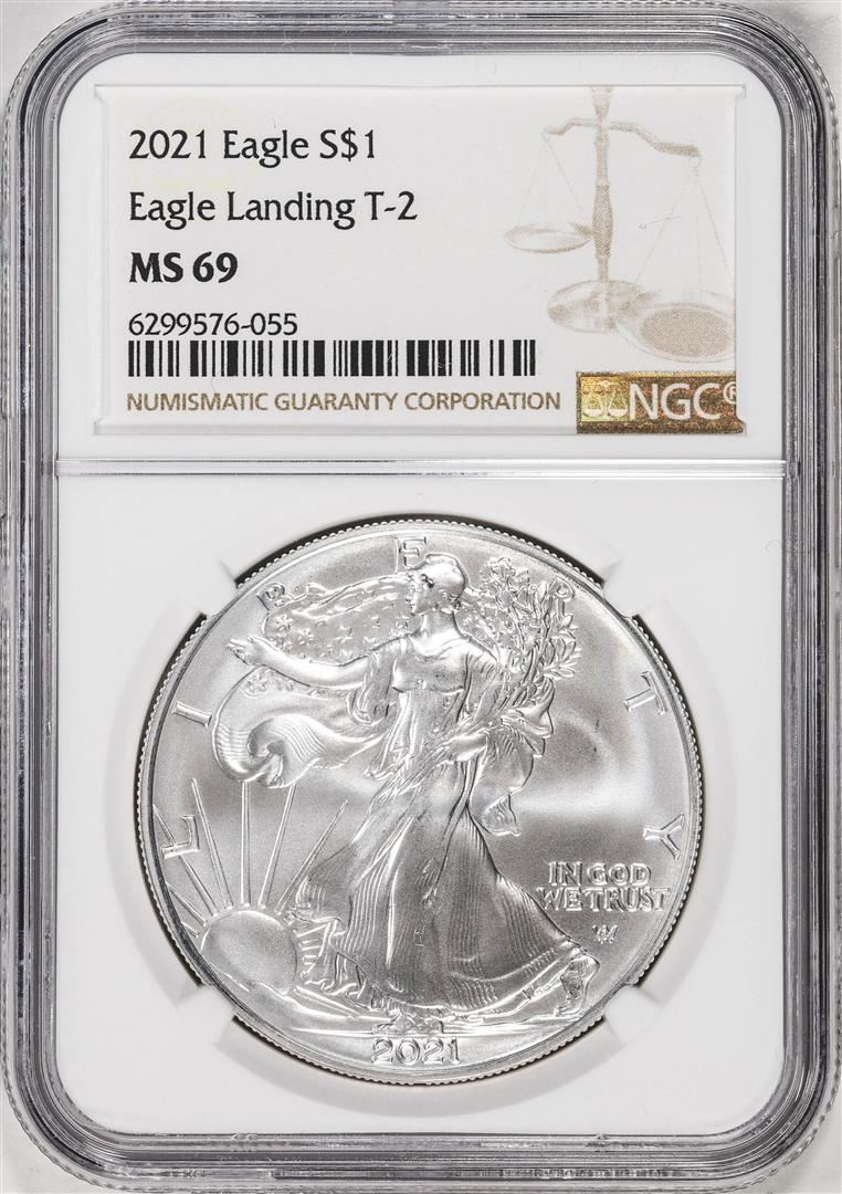 One 2021 Type 2 $1 American Silver Eagle Coin NGC MS69. NGC Certified.