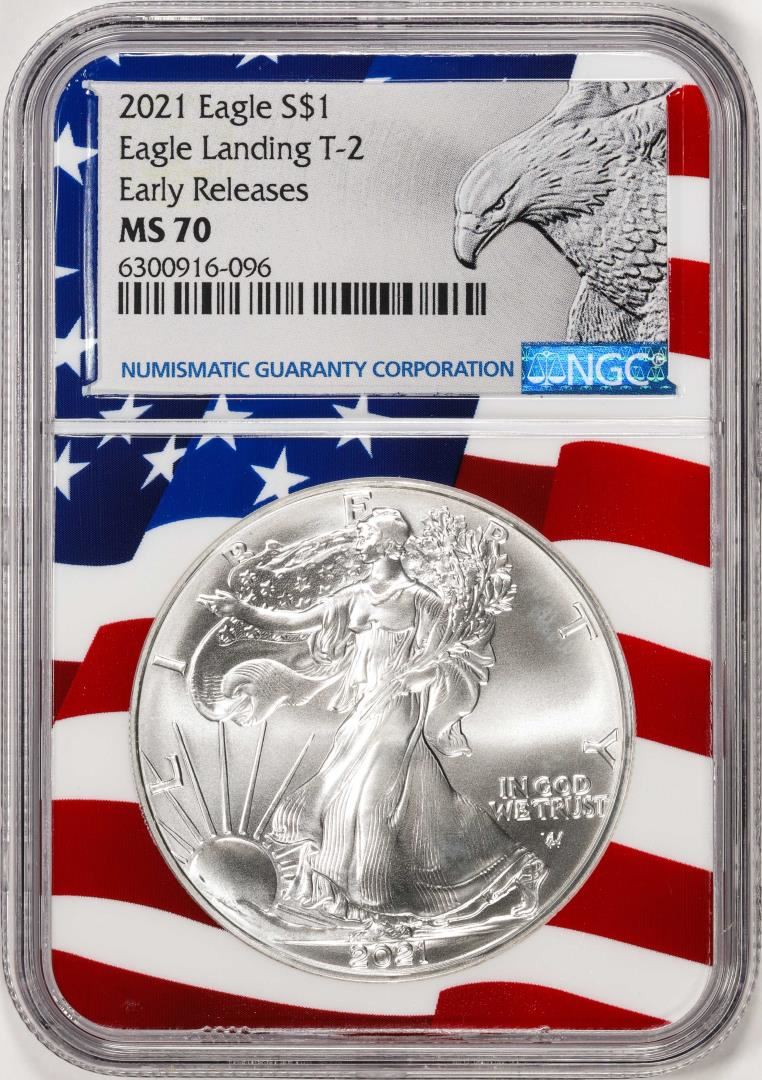 2021 Type 2 $1 American Silver Eagle Coin NGC MS70 Early Releases Flag Core