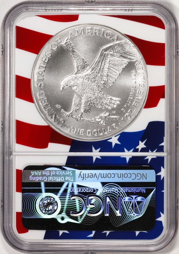One 2021 Type 2 $1 American Silver Eagle Coin NGC MS70 Early Releases Flag Core. NGC Certified.