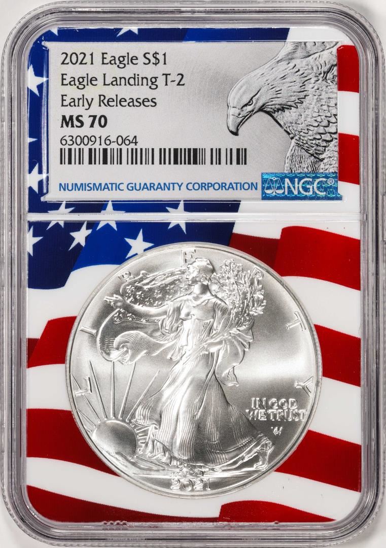 2021 Type 2 $1 American Silver Eagle Coin NGC MS70 Early Releases Flag Core