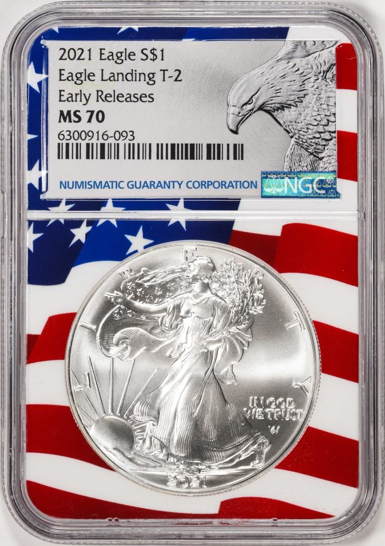 2021 Type 2 $1 American Silver Eagle Coin NGC MS70 Early Releases Flag Core