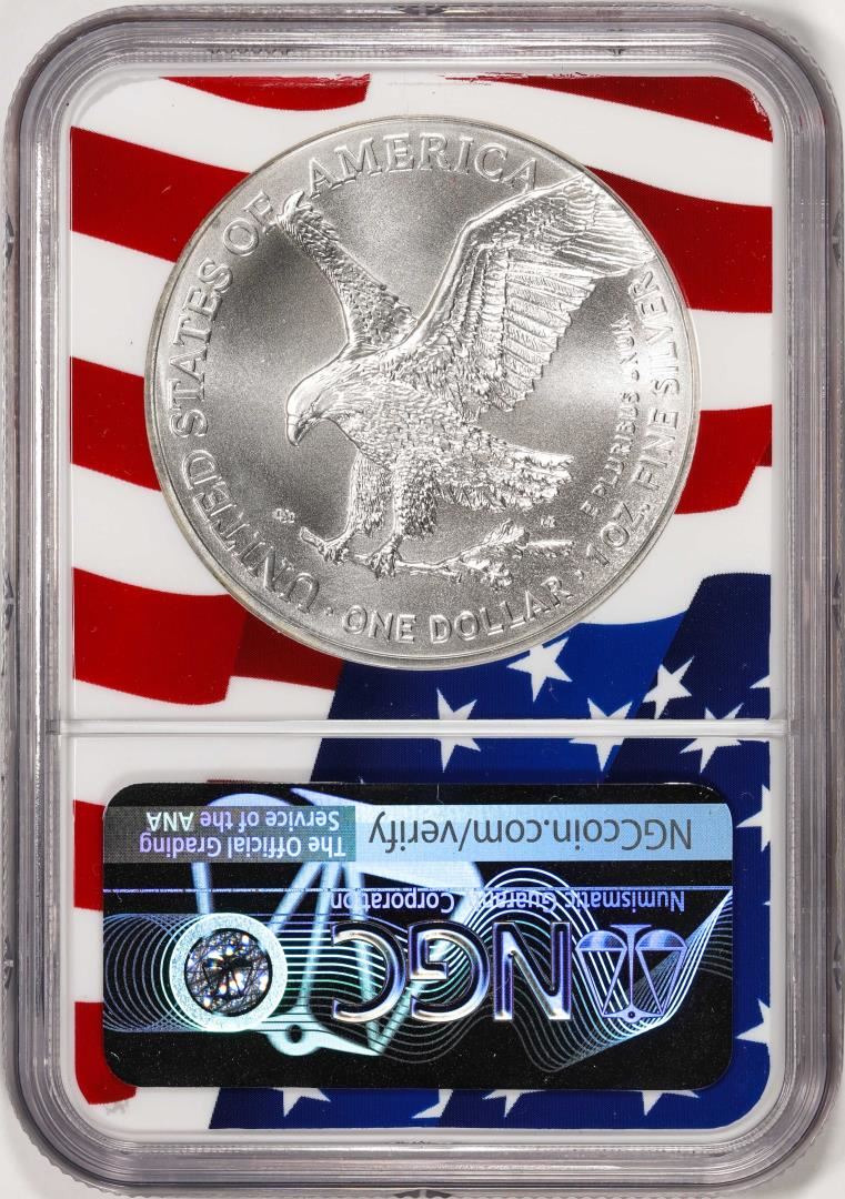 One 2021 Type 2 $1 American Silver Eagle Coin NGC MS70 Early Releases Flag Core. NGC Certified.
