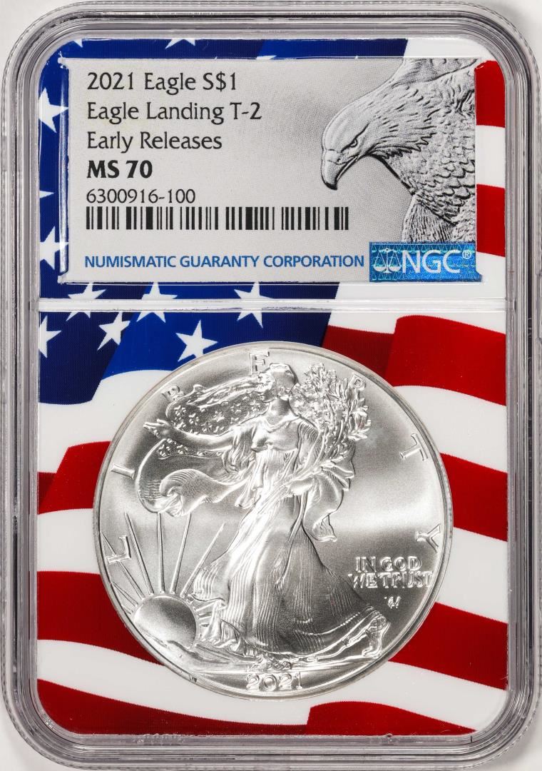 2021 Type 2 $1 American Silver Eagle Coin NGC MS70 Early Releases Flag Core