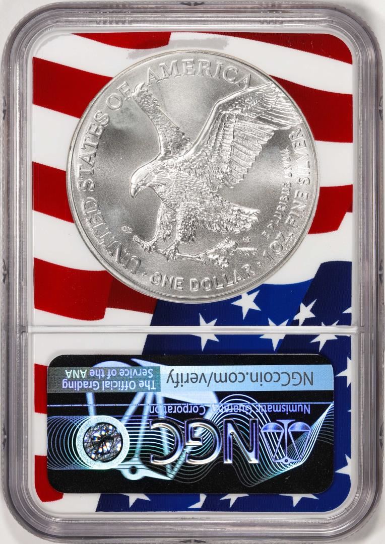 One 2021 Type 2 $1 American Silver Eagle Coin NGC MS70 Early Releases Flag Core. NGC Certified.
