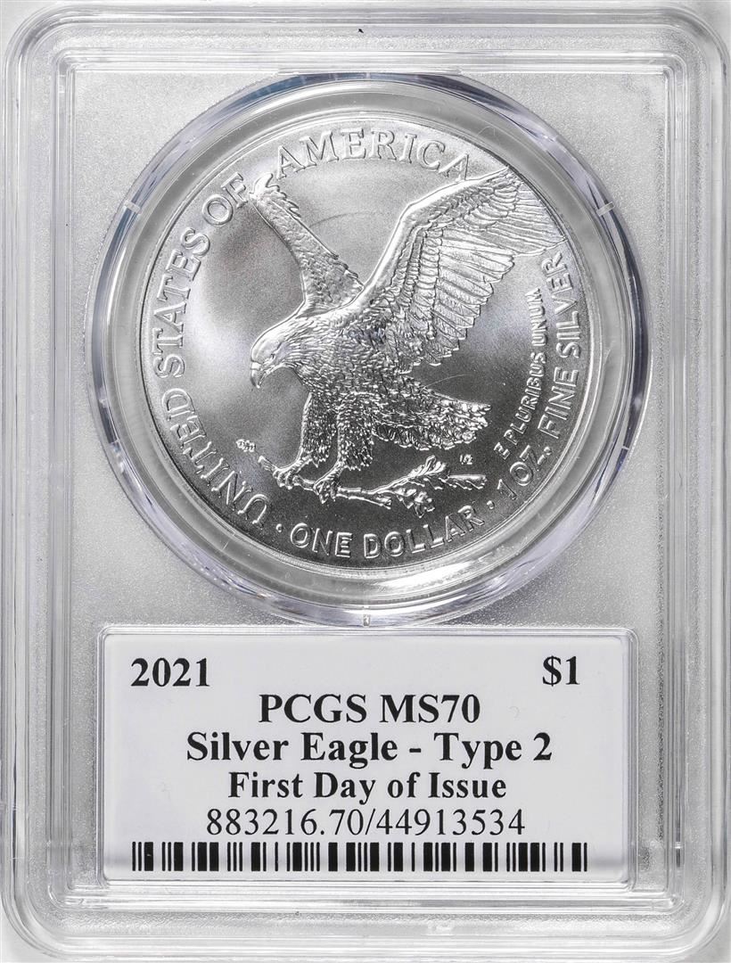2021 Type 2 $1 American Silver Eagle Coin PCGS MS70 Cleveland Signature FDOI