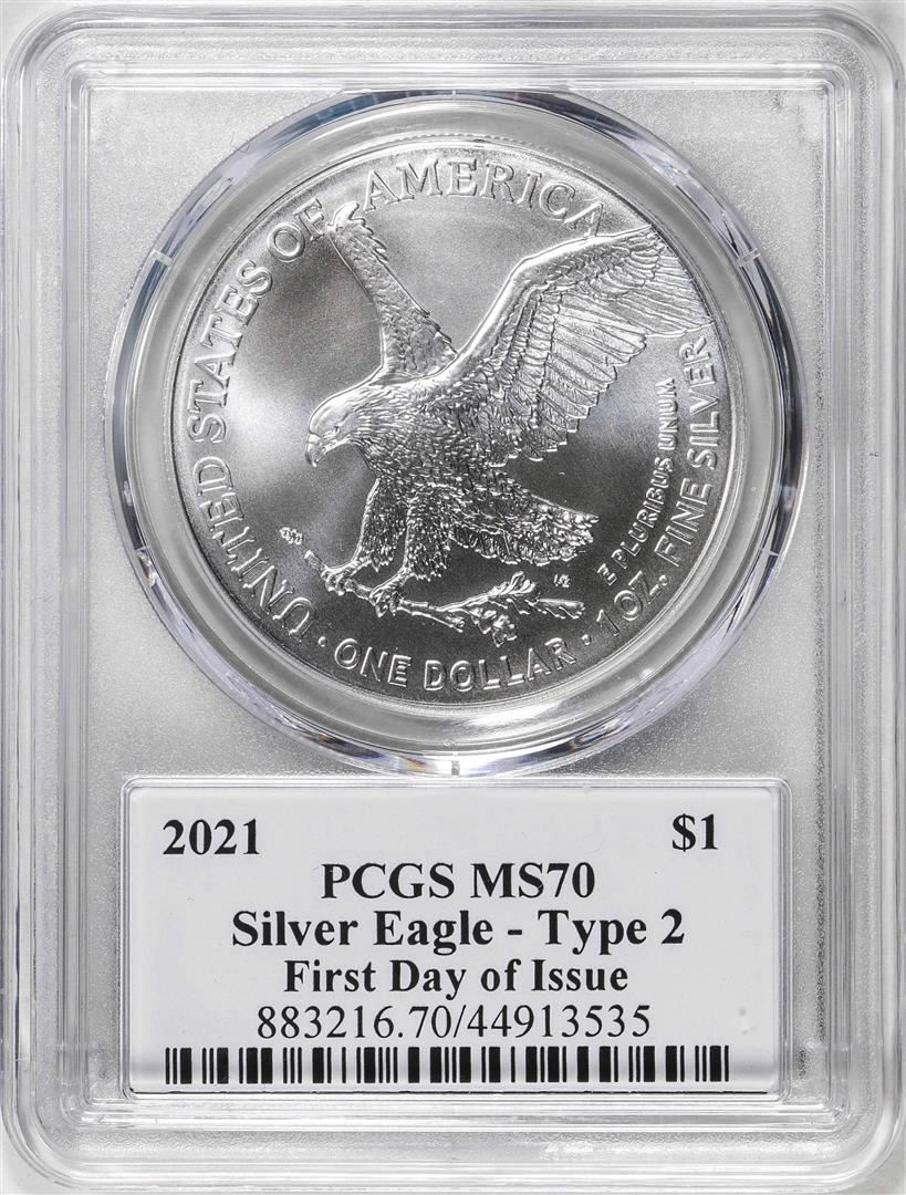 2021 Type 2 $1 American Silver Eagle Coin PCGS MS70 Cleveland Signature FDOI