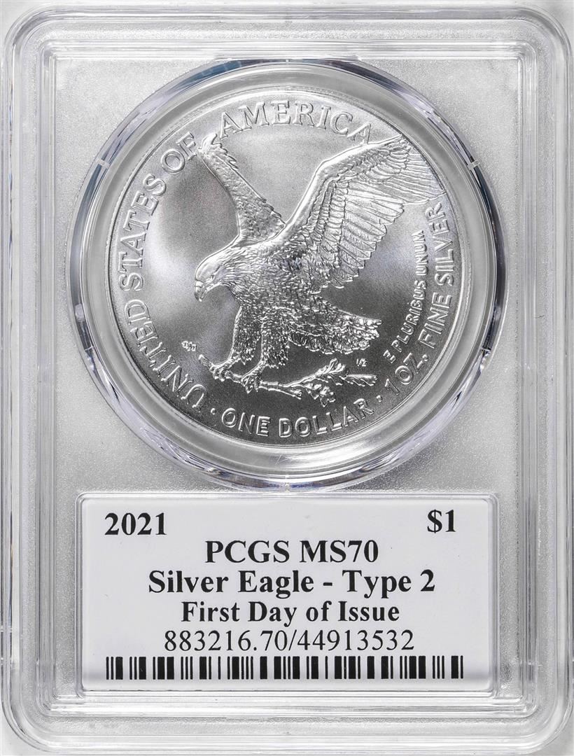 2021 Type 2 $1 American Silver Eagle Coin PCGS MS70 Cleveland Signature FDOI
