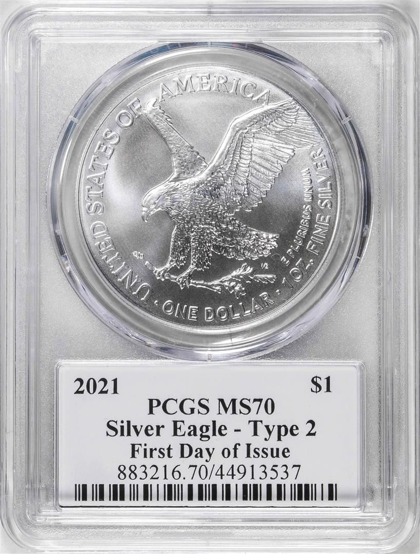 2021 Type 2 $1 American Silver Eagle Coin PCGS MS70 Cleveland Signature FDOI