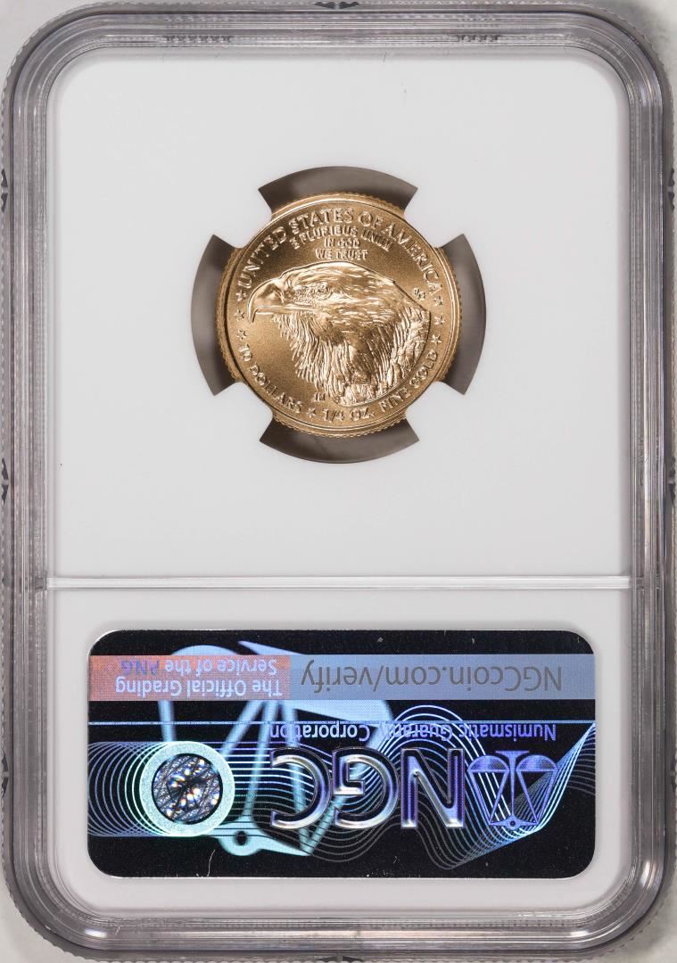One 2021 Type 2 $10 American Gold Eagle Coin NGC MS70 FDOI Reagan Facsimile Signature. NGC Certified.