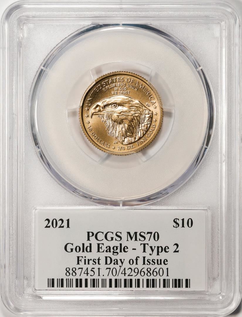 2021 Type 2 $10 American Gold Eagle Coin PCGS MS70 FDOI Cleveland Signature