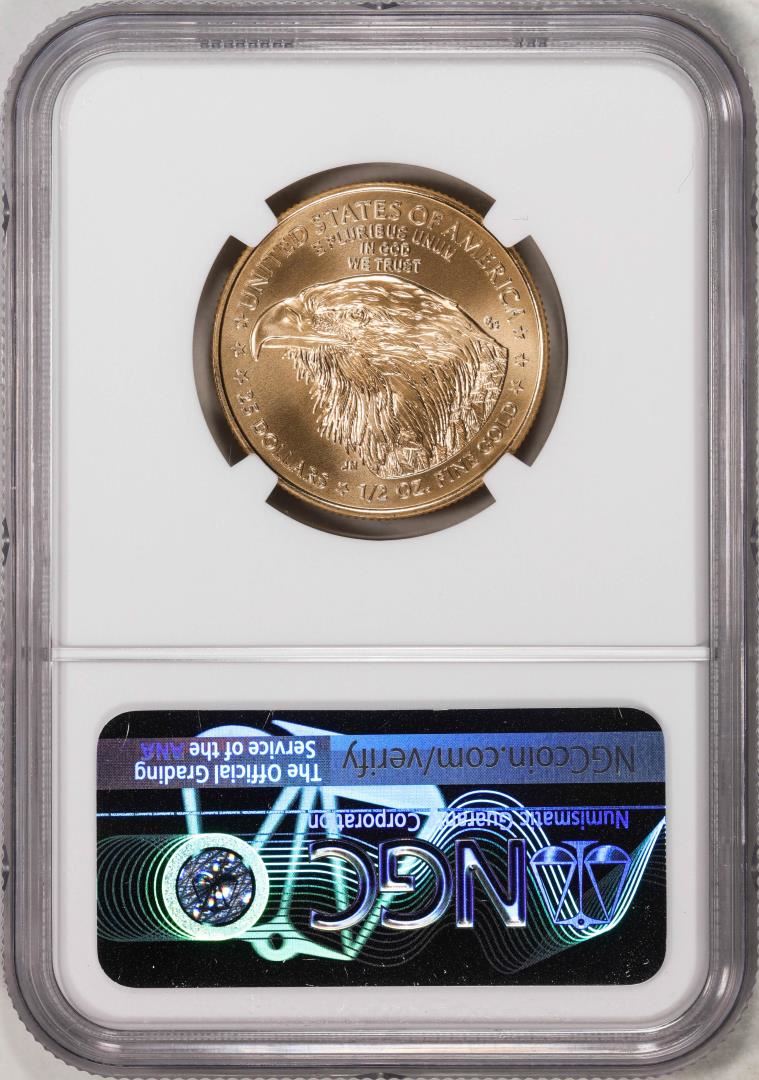 One 2021 Type 2 $25 American Gold Eagle Coin NGC MS70 FDOI Reagan Facsimile Signature. NGC Certified.
