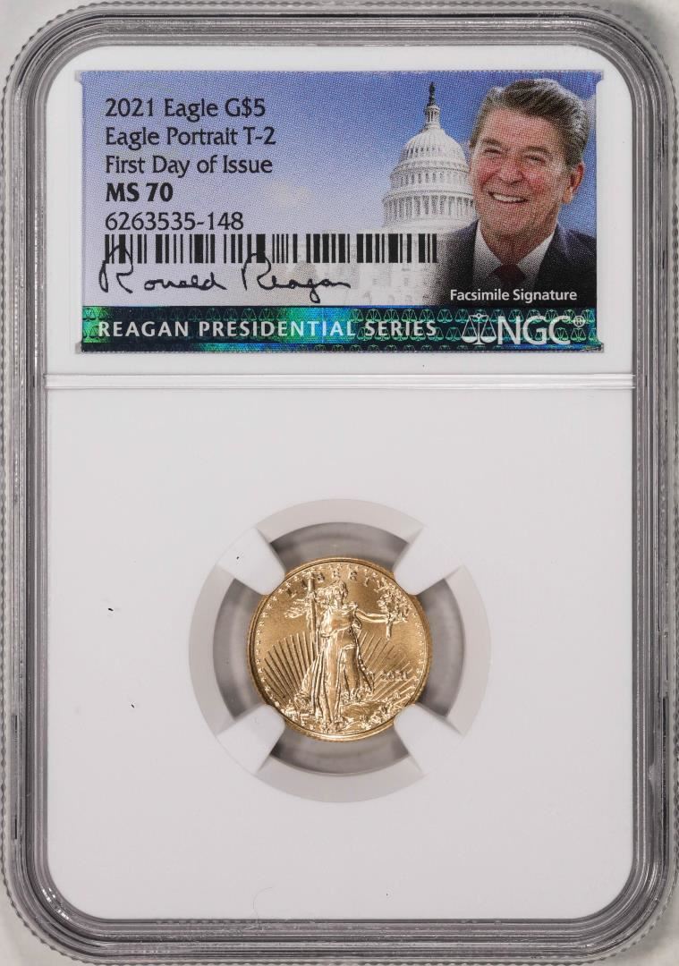 2021 Type 2 $5 American Gold Eagle Coin NGC MS70 FDOI Reagan Facsimile Signature