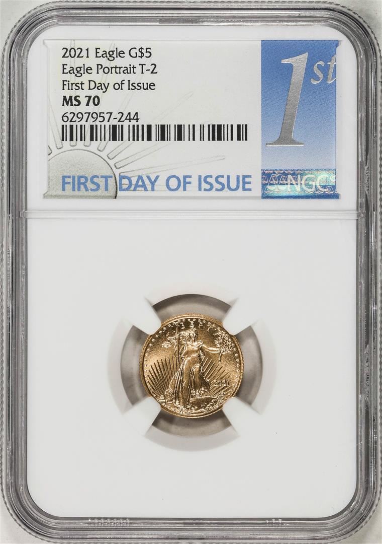 2021 Type 2 $5 American Gold Eagle Coin NGC MS70 First Day of Issue