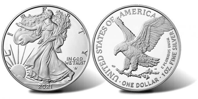 One 2021 Type-2 American .999 Fine Silver Eagle Dollar Coin.