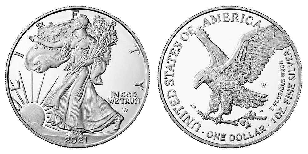 One 2021 Type-2 American .999 Fine Silver Eagle Dollar Coin.