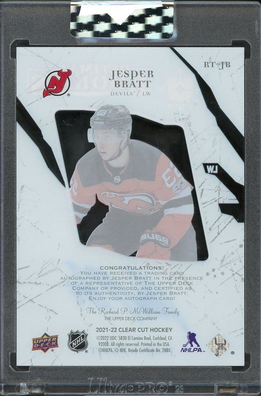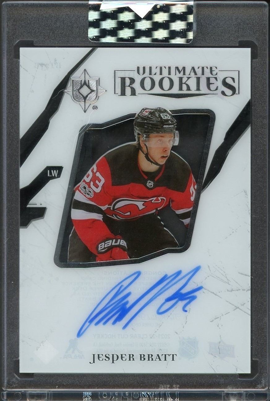 2021-22 UD Clear Cut "Ultimate Rookies" autograph of young NJ Devils star Jesper Bratt