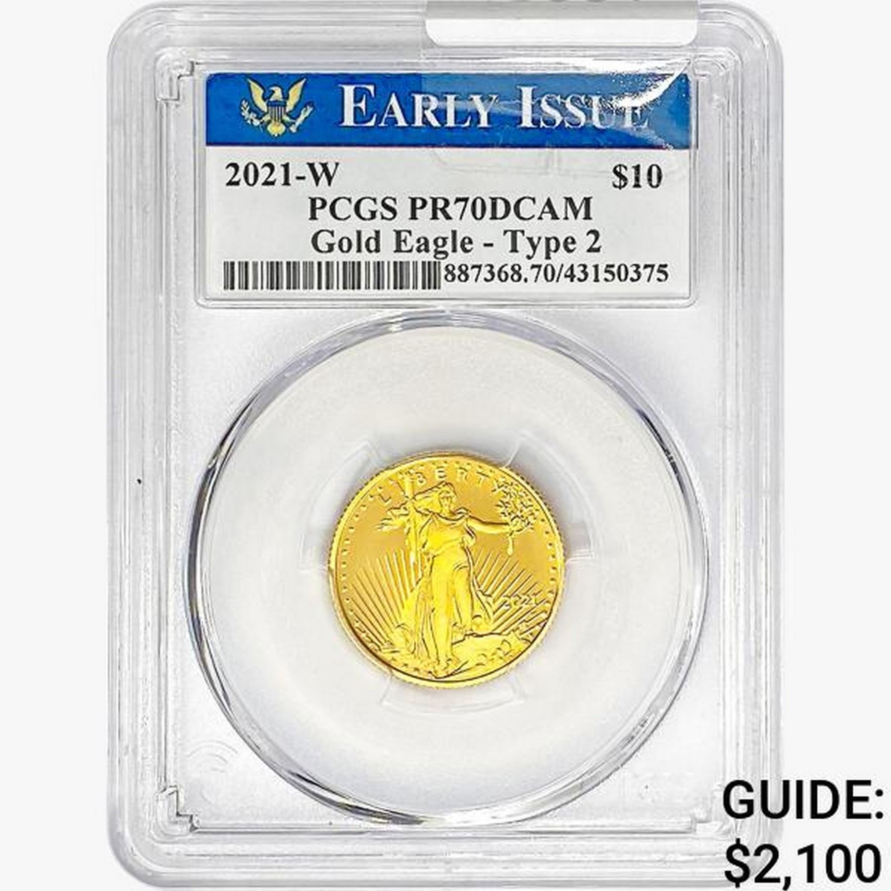 2021-W 1/4oz $10 AGE Type 2 PCGS PR70 DCAM