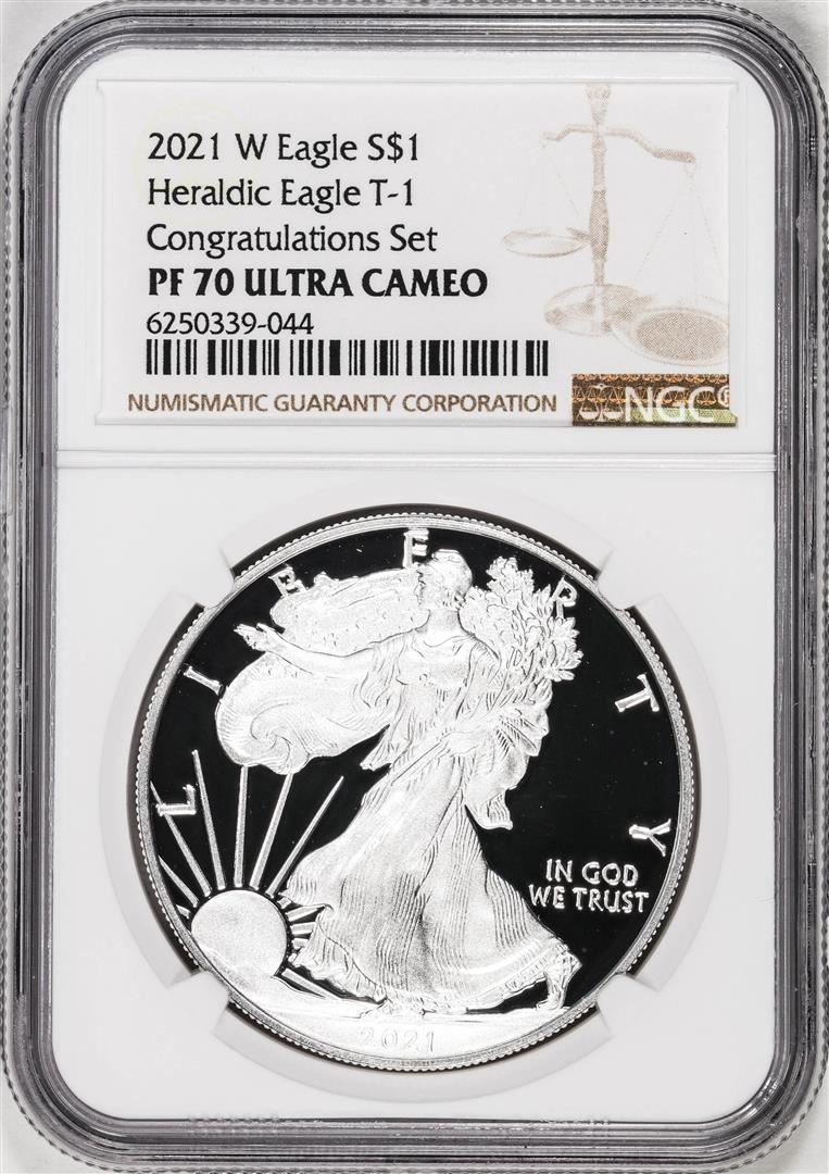 2021-W $1 Proof American Silver Eagle Coin NGC PF70 Ultra Cameo Congratulations Set