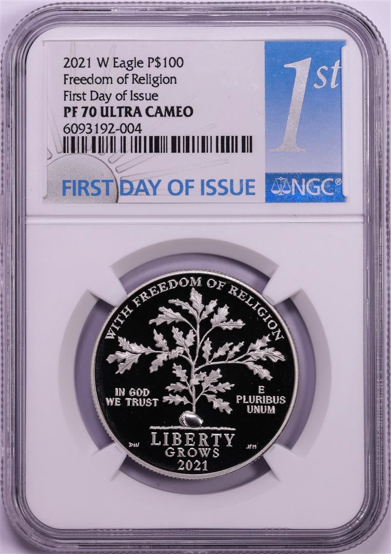 One 2021-W $100 Proof Platinum American Eagle Coin NGC PF70 Ultra Cameo First Day of Issue. NGC Certified.
