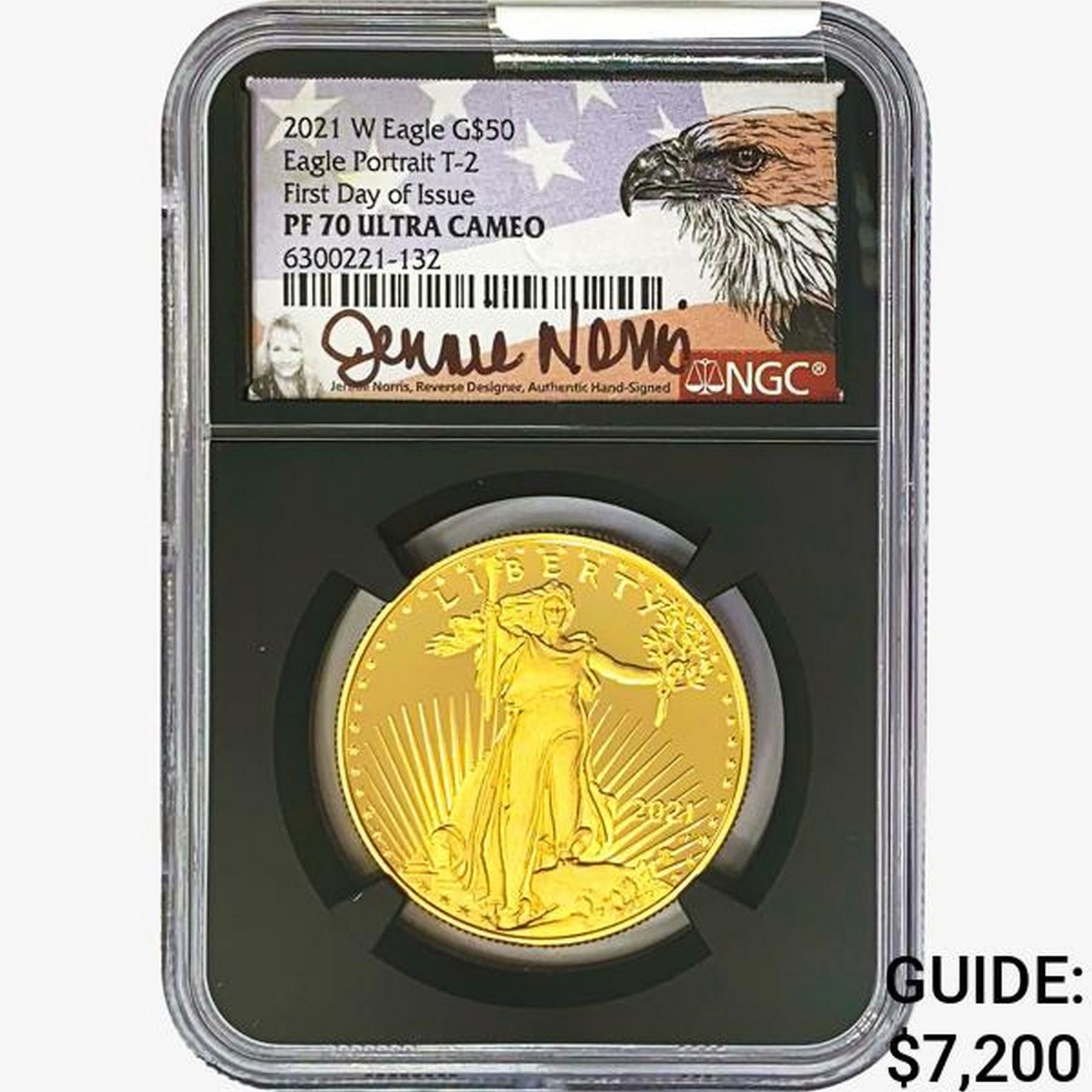 2021-W $50 1oz. Gold Eagle NGC PF70 UC T-2 FDI