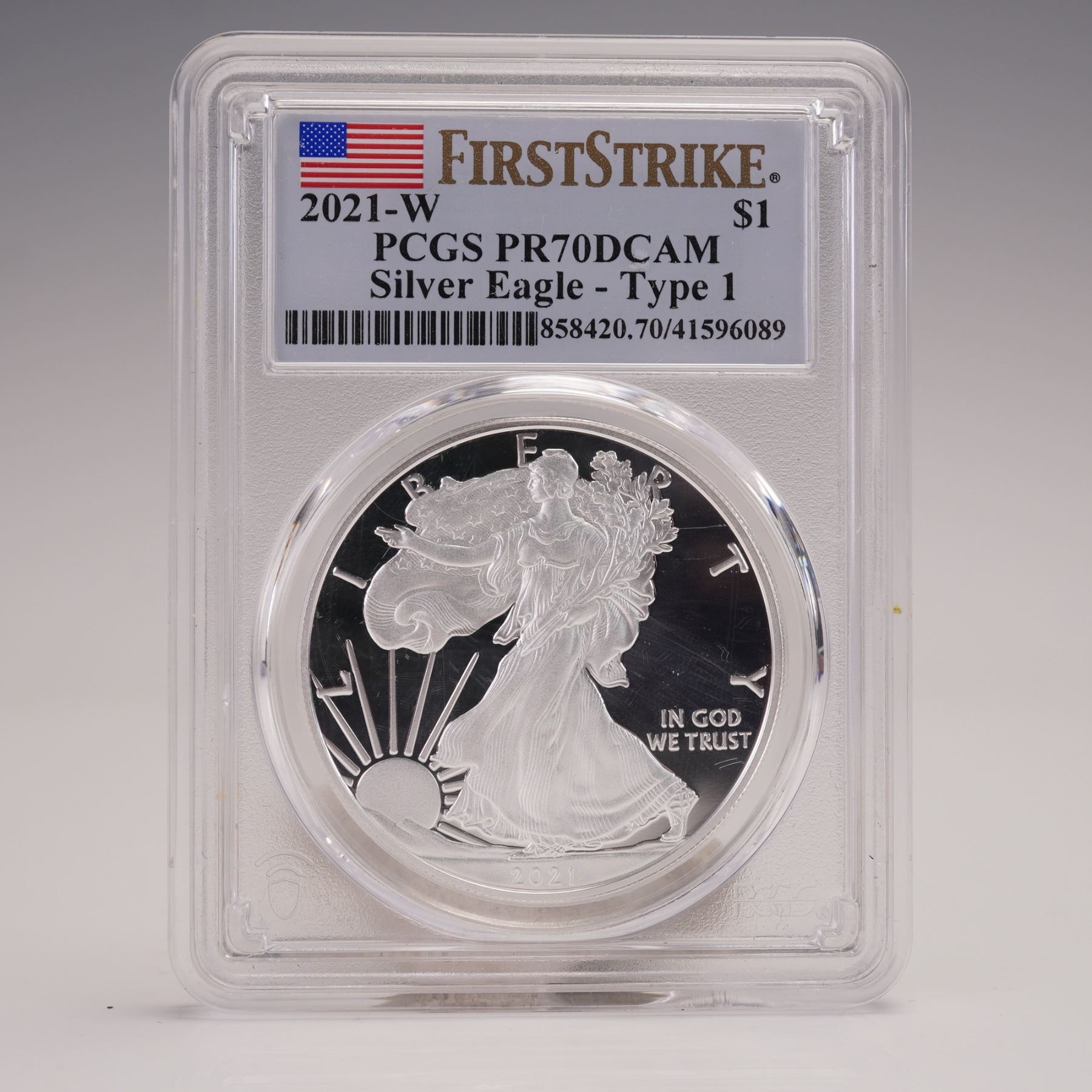 2021-W American Silver Eagle Type 1 Dollar PCGS Graded PR70 DCAM