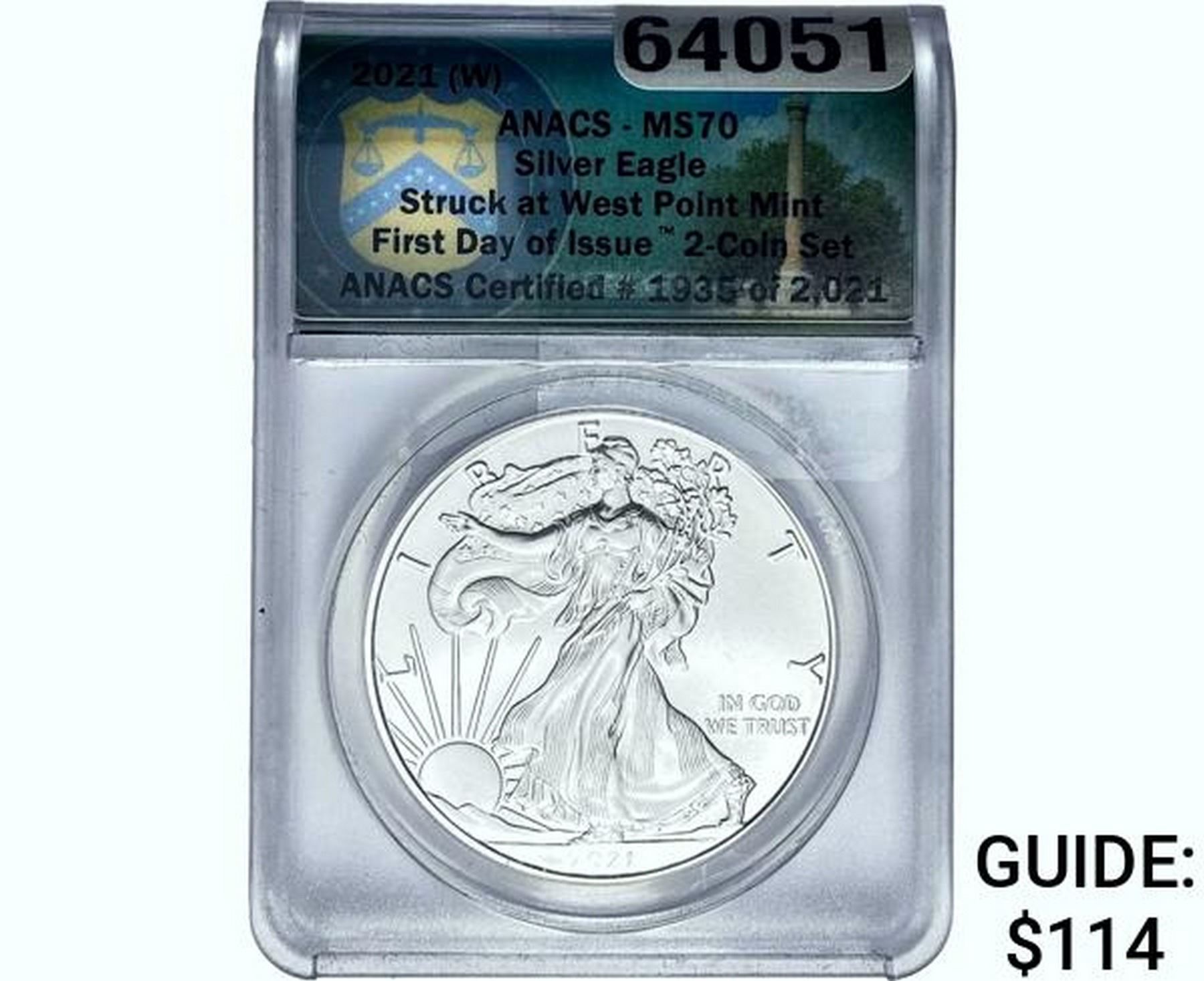 2021-W Silver Eagle ANACS MS70 1st Day of Issue