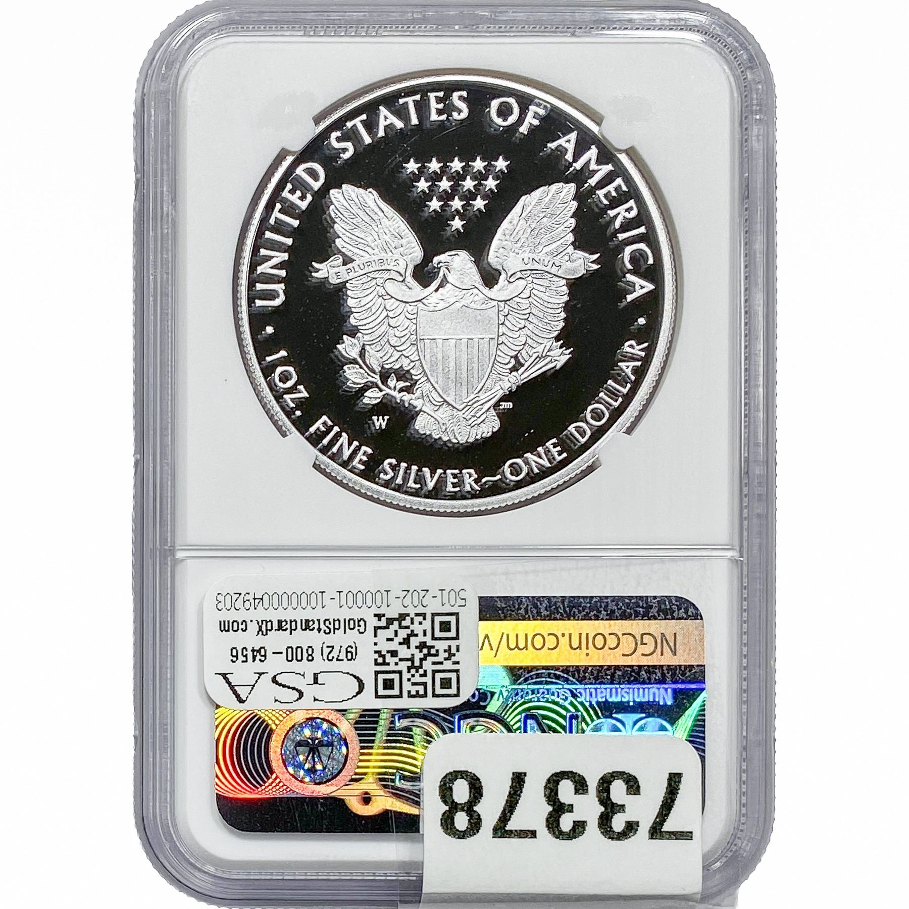 e. Coins sold referencing a third-party grading service are sold “AS IS” without any express or implied warranty, except for a guarantee by GSA that they are genuine. Removal or alteration of the holder, voids all of Bidder’s claims concerning that Product. Certain warranties may be available from the grading services and Bidders are referred to them for further details: Numismatic Guaranty Corporation (NGC), PO Box 4776, Sarasota, FL 34230, www.ngccoin.com/services/writtenguarantee.asp; Professional Coin Grading Services (PCGS), PO Box 9458, Newport Beach, CA 92658, www.pcgs.com/guarantee.html; ANACS, 6555 S. Kenton St., Ste. 303, Englewood, CO 80111; and Independent Coin Grading Co. (ICG), 7901 East Bellview, Ave., Suite 50, Englewood, CO 80111.