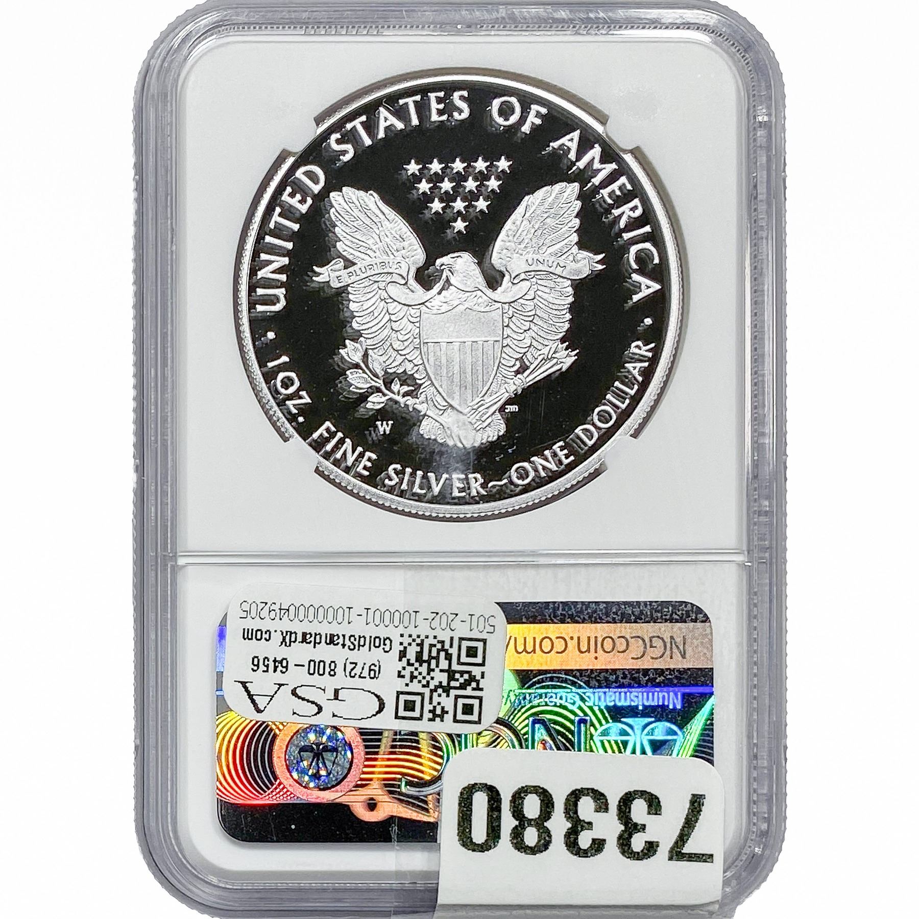 e. Coins sold referencing a third-party grading service are sold “AS IS” without any express or implied warranty, except for a guarantee by GSA that they are genuine. Removal or alteration of the holder, voids all of Bidder’s claims concerning that Product. Certain warranties may be available from the grading services and Bidders are referred to them for further details: Numismatic Guaranty Corporation (NGC), PO Box 4776, Sarasota, FL 34230, www.ngccoin.com/services/writtenguarantee.asp; Professional Coin Grading Services (PCGS), PO Box 9458, Newport Beach, CA 92658, www.pcgs.com/guarantee.html; ANACS, 6555 S. Kenton St., Ste. 303, Englewood, CO 80111; and Independent Coin Grading Co. (ICG), 7901 East Bellview, Ave., Suite 50, Englewood, CO 80111.