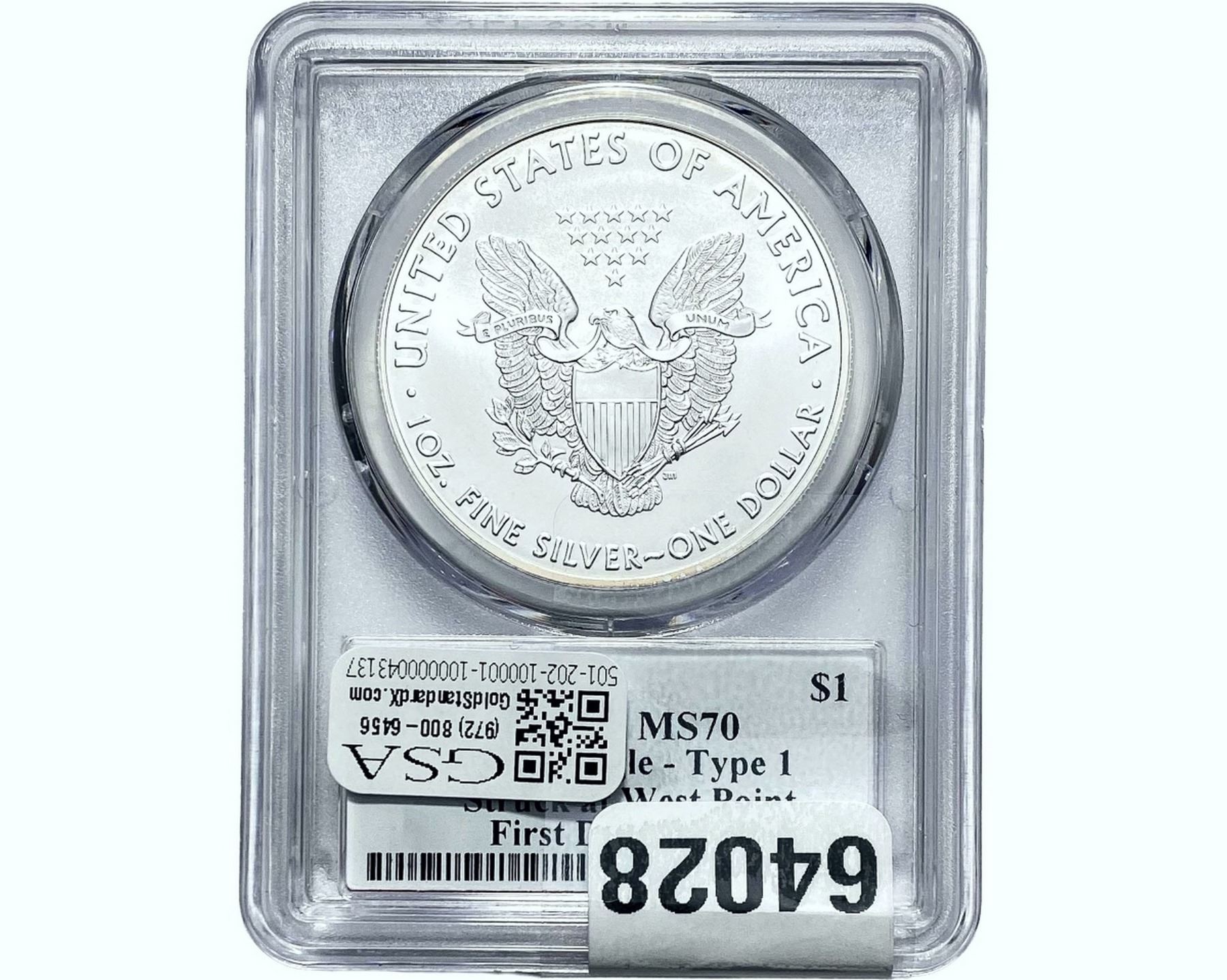 e. Coins sold referencing a third-party grading service are sold “AS IS” without any express or implied warranty, except for a guarantee by GSA that they are genuine. Removal or alteration of the holder, voids all of Bidder’s claims concerning that Product. Certain warranties may be available from the grading services and Bidders are referred to them for further details: Numismatic Guaranty Corporation (NGC), PO Box 4776, Sarasota, FL 34230, www.ngccoin.com/services/writtenguarantee.asp; Professional Coin Grading Services (PCGS), PO Box 9458, Newport Beach, CA 92658, www.pcgs.com/guarantee.html; ANACS, 6555 S. Kenton St., Ste. 303, Englewood, CO 80111; and Independent Coin Grading Co. (ICG), 7901 East Bellview, Ave., Suite 50, Englewood, CO 80111.