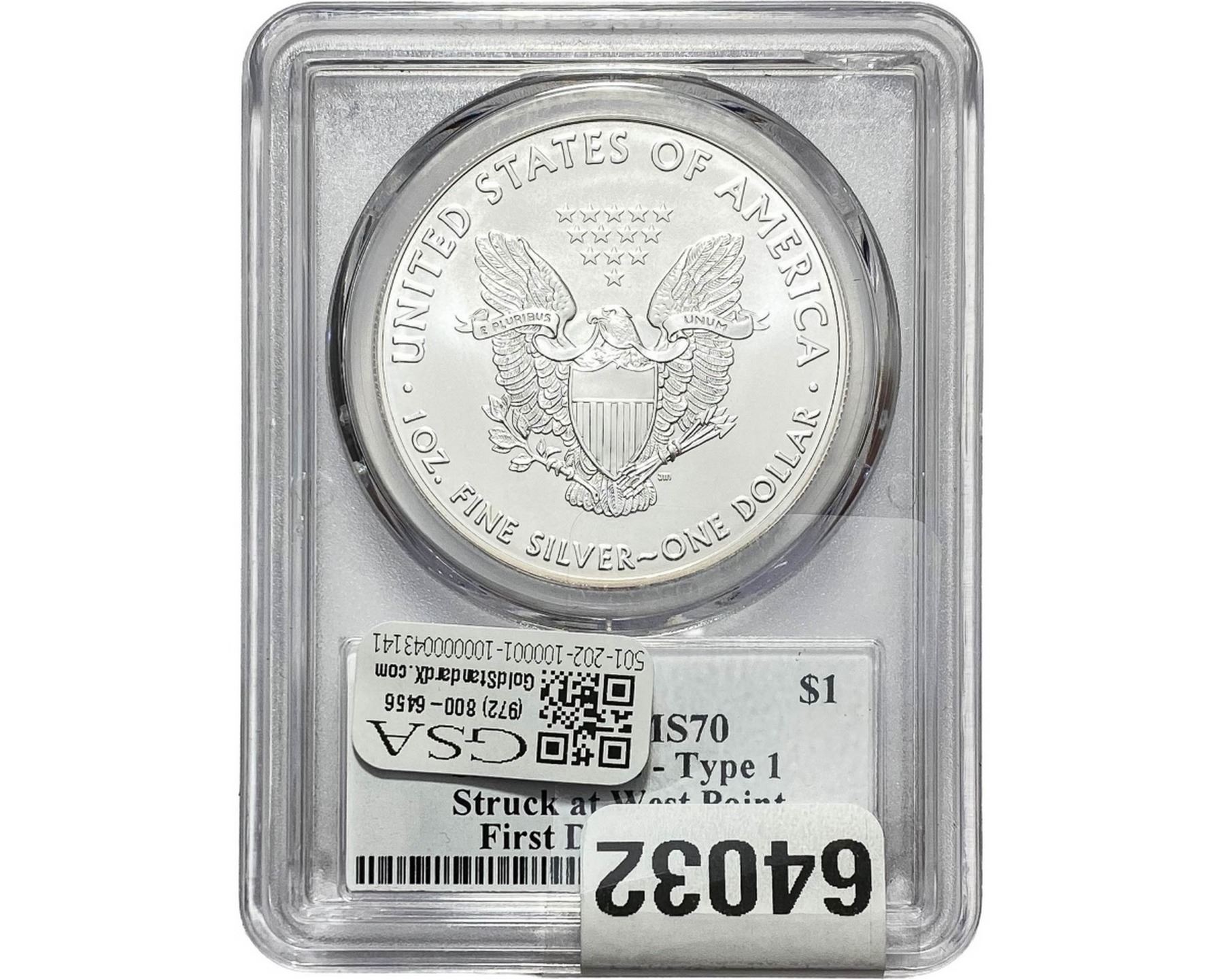 e. Coins sold referencing a third-party grading service are sold “AS IS” without any express or implied warranty, except for a guarantee by GSA that they are genuine. Removal or alteration of the holder, voids all of Bidder’s claims concerning that Product. Certain warranties may be available from the grading services and Bidders are referred to them for further details: Numismatic Guaranty Corporation (NGC), PO Box 4776, Sarasota, FL 34230, www.ngccoin.com/services/writtenguarantee.asp; Professional Coin Grading Services (PCGS), PO Box 9458, Newport Beach, CA 92658, www.pcgs.com/guarantee.html; ANACS, 6555 S. Kenton St., Ste. 303, Englewood, CO 80111; and Independent Coin Grading Co. (ICG), 7901 East Bellview, Ave., Suite 50, Englewood, CO 80111.