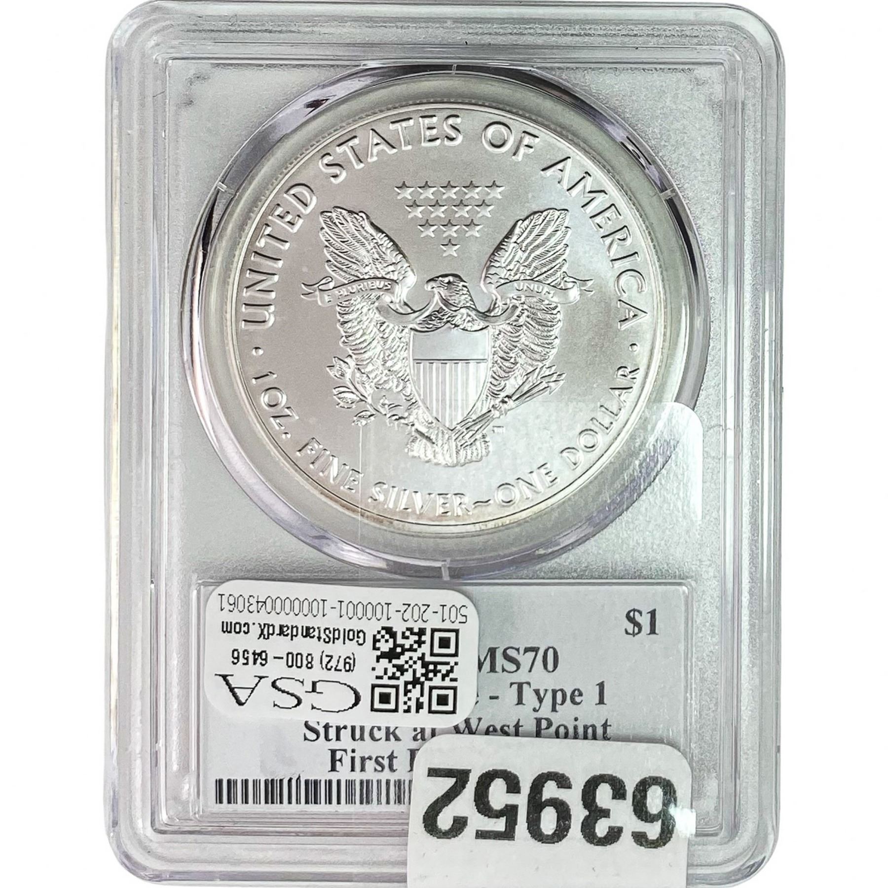 2021-W Silver Eagle PCGS MS70 TY 1 Fisrt Day of Issue