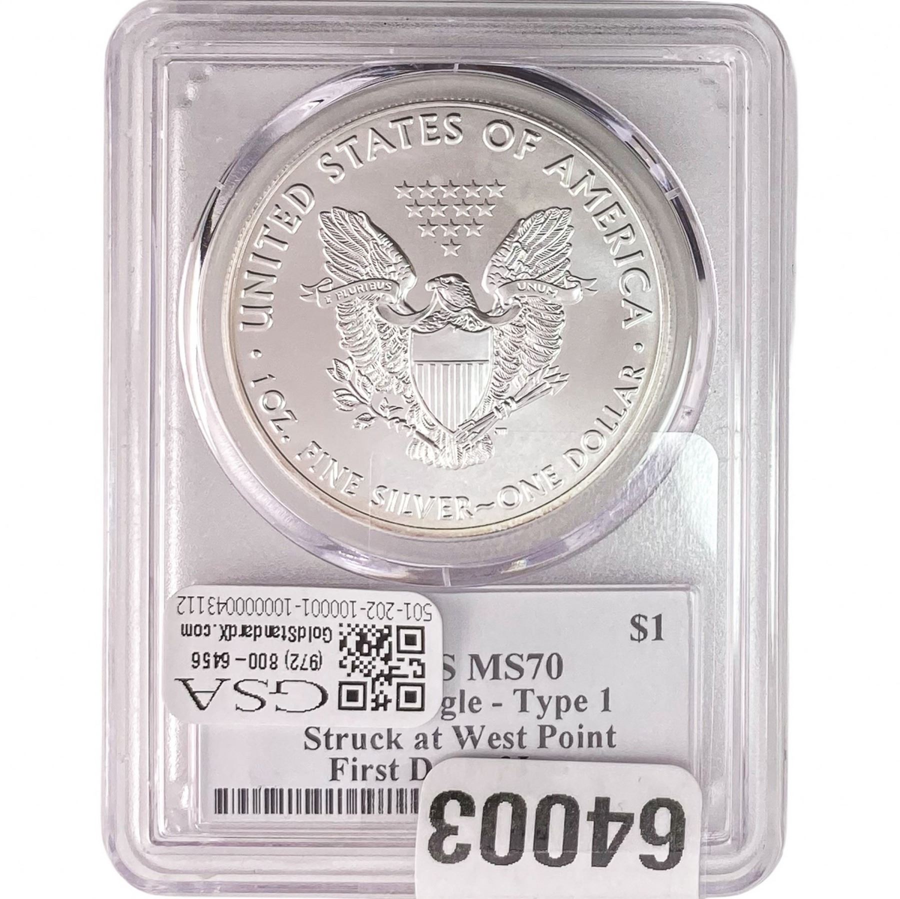 2021-W Silver Eagle PCGS MS70 TY1 First Day of Issue