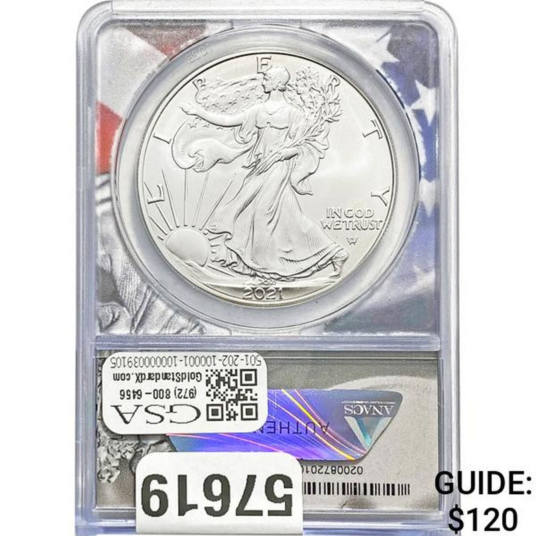 e. Coins sold referencing a third-party grading service are sold “AS IS” without any express or implied warranty, except for a guarantee by GSA that they are genuine. Removal or alteration of the holder, voids all of Bidder’s claims concerning that Product. Certain warranties may be available from the grading services and Bidders are referred to them for further details: Numismatic Guaranty Corporation (NGC), PO Box 4776, Sarasota, FL 34230, www.ngccoin.com/services/writtenguarantee.asp; Professional Coin Grading Services (PCGS), PO Box 9458, Newport Beach, CA 92658, www.pcgs.com/guarantee.html; ANACS, 6555 S. Kenton St., Ste. 303, Englewood, CO 80111; and Independent Coin Grading Co. (ICG), 7901 East Bellview, Ave., Suite 50, Englewood, CO 80111.