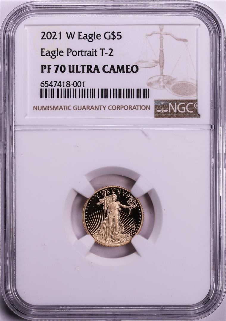 2021-W Type 2 $5 Proof American Gold Eagle Coin NGC PF70 Ultra Cameo