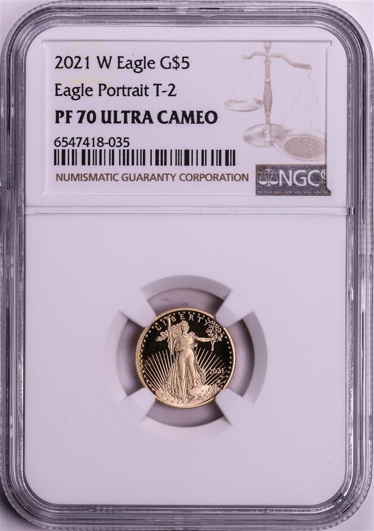 One 2021-W Type 2 $5 Proof American Gold Eagle Coin NGC PF70 Ultra Cameo. NGC Certified.