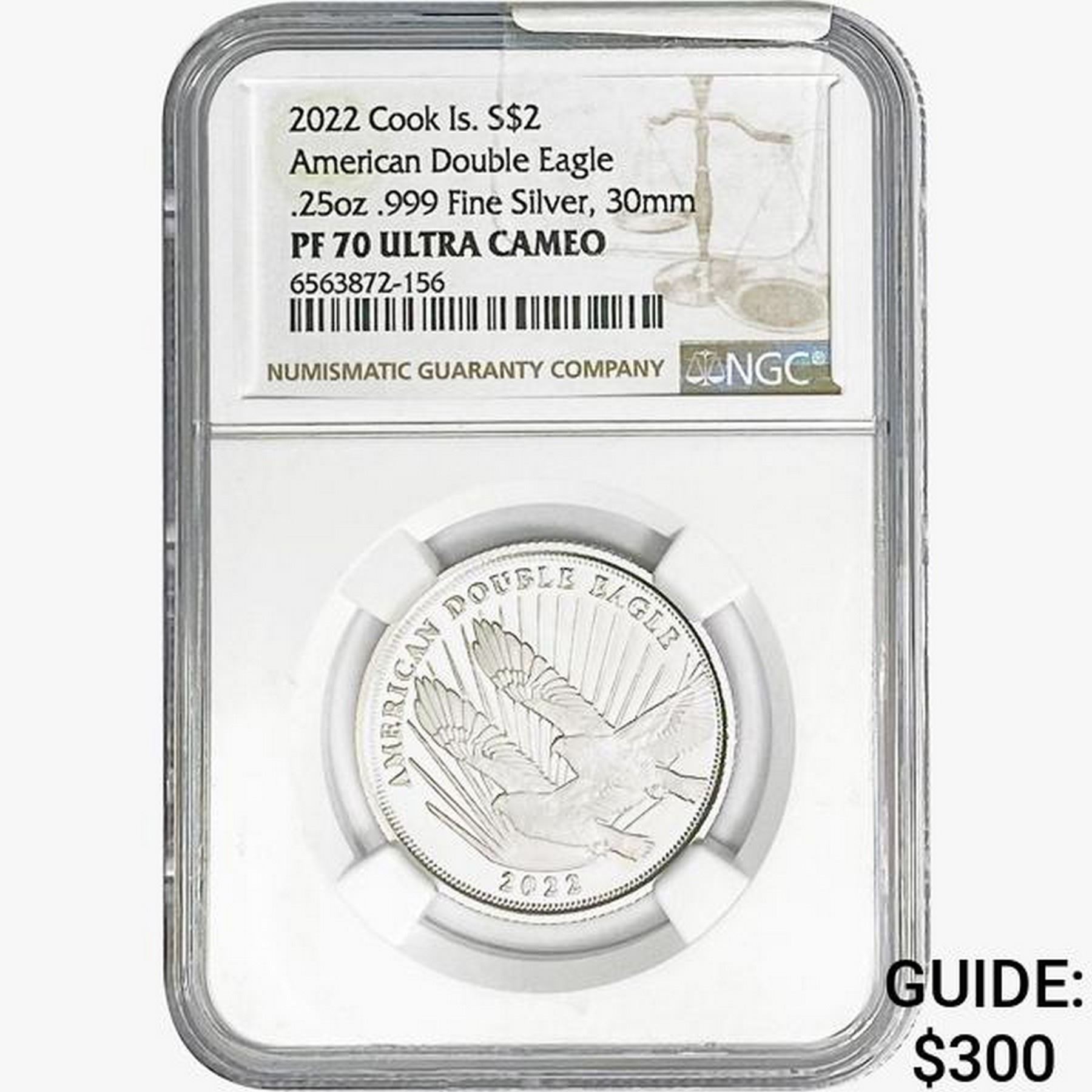 2022 1/4oz.SILV $2 DBL Eagle NGC PF70 UC Cook Is.